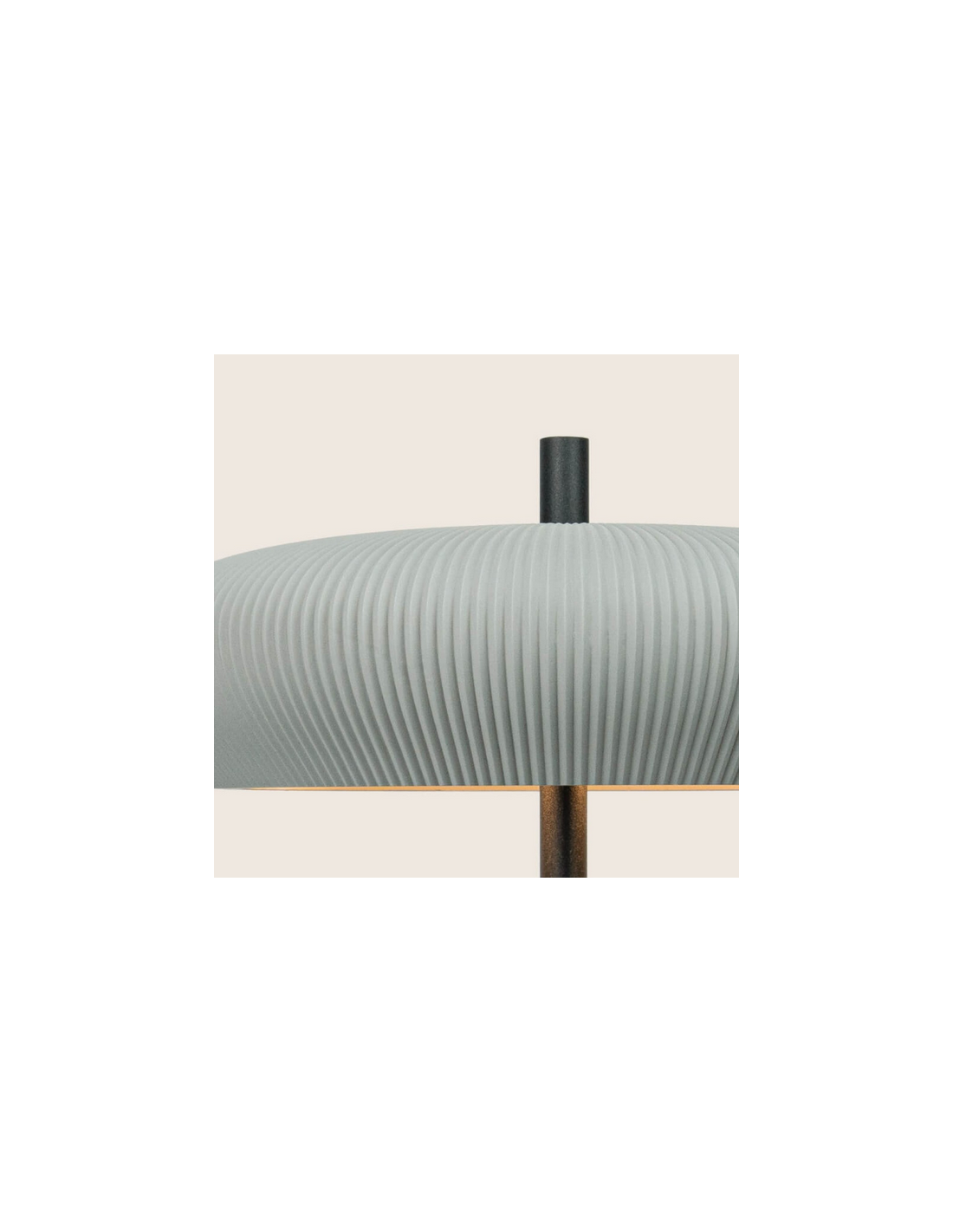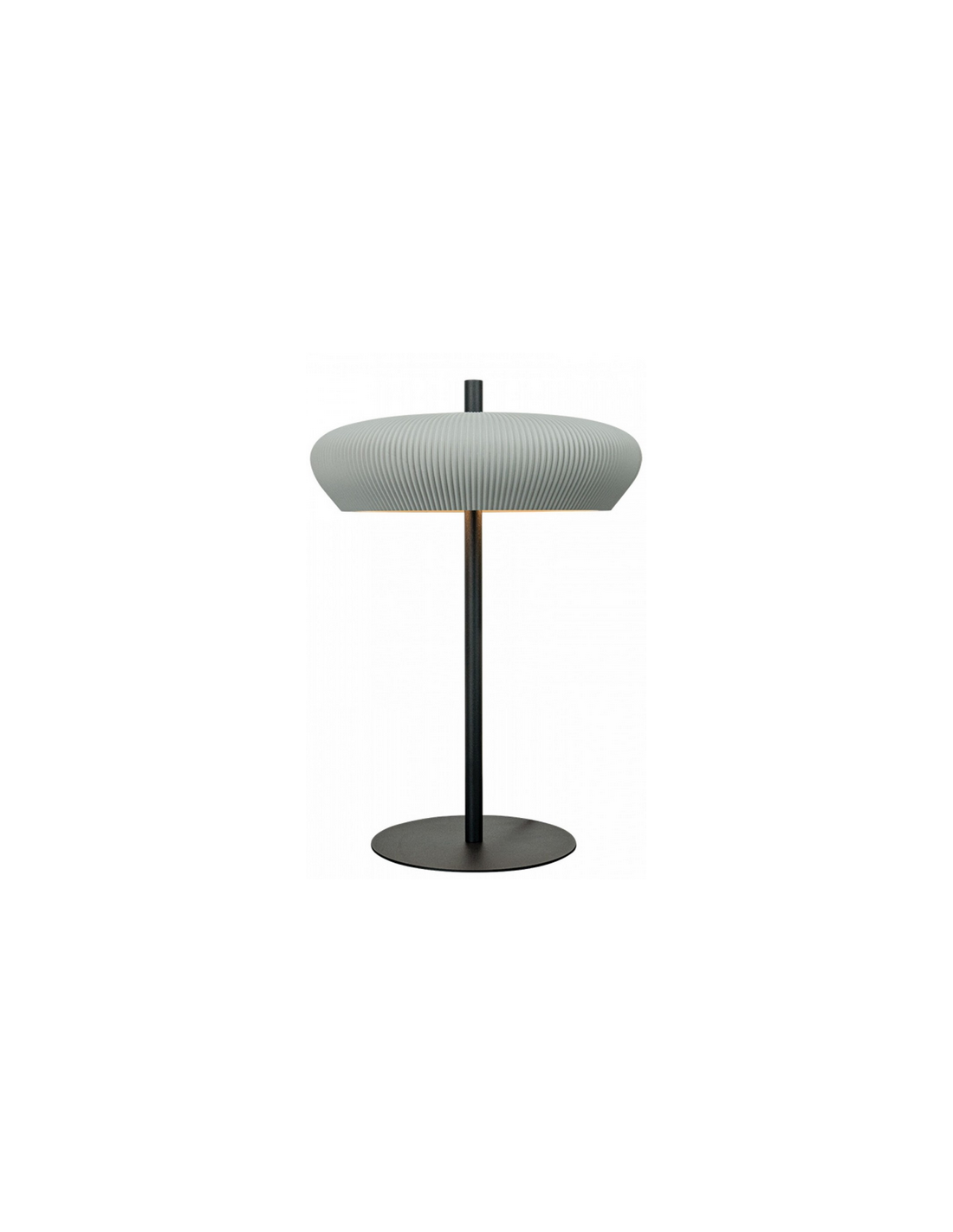 Bordlampe fremstillet i et moderne og tidssvarende design af satineret sortlakeret aluminium og gråt ler. Bordlampen måler 40,5 cm i højden og 28,5 cm i skærmdiameter og anvender 2 x G9 LED lyskilder (Ekskl.). Lampen kommer med 150 cm ledning med afbryder.