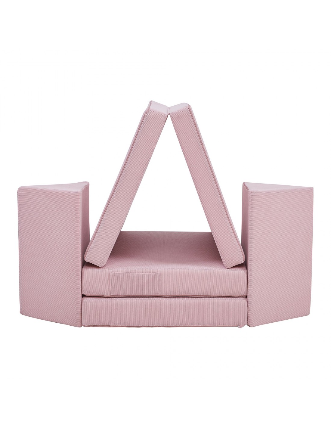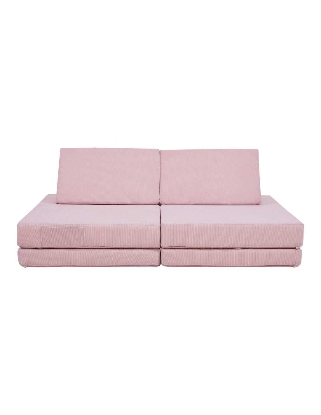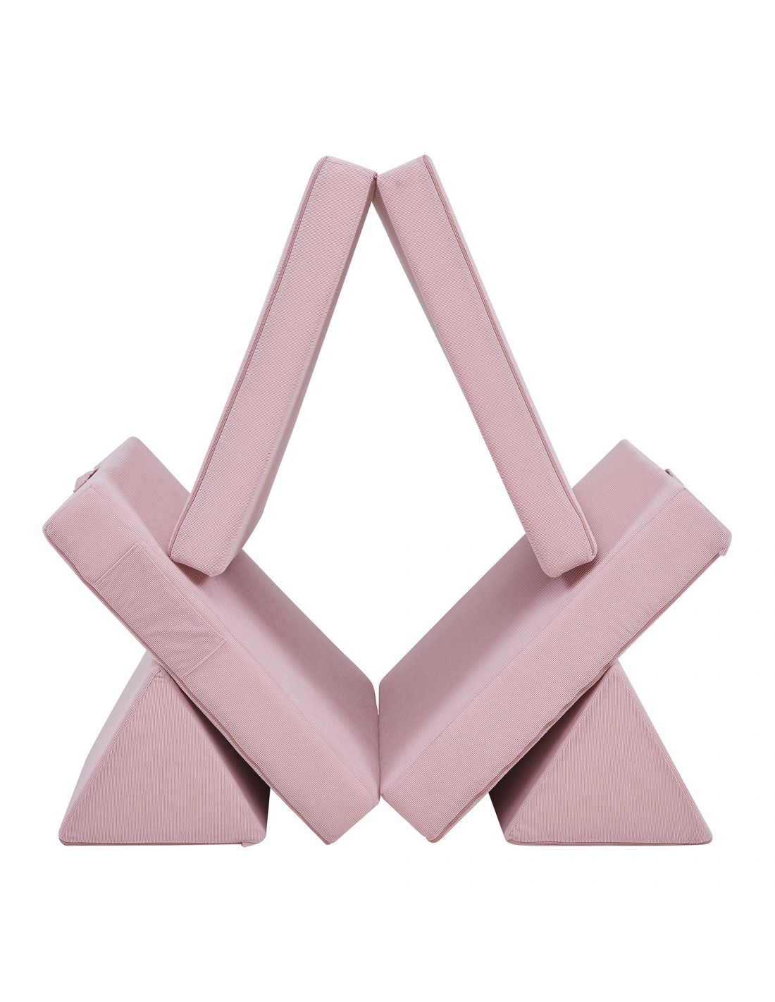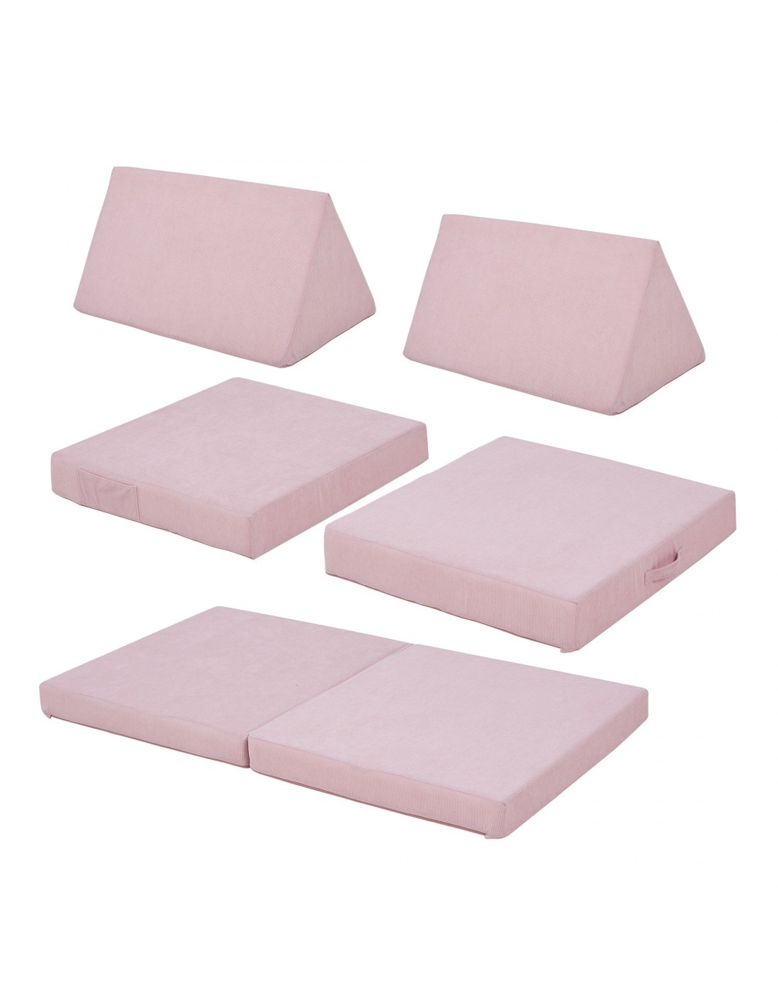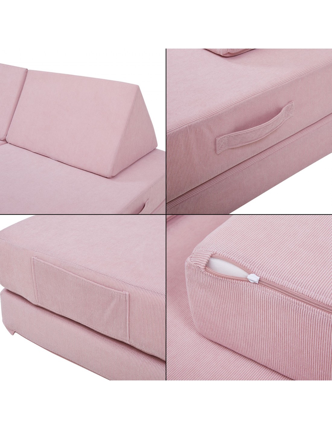 Tumle børnesofa udført i et design af rosa corduroy polyester med skumfyld. Opsæt sofaen efter ønske, og lad børnene lege med de forskellige moduler. Opsættes sofaen som en sofa, så måler den 120 x 66 cm i bredde og dybde.