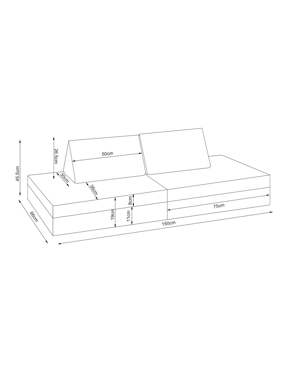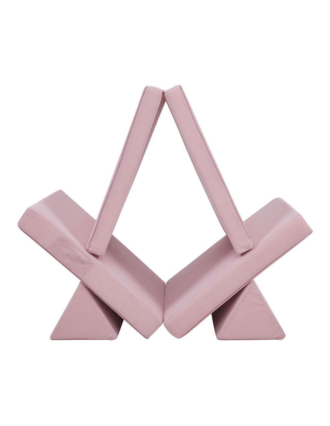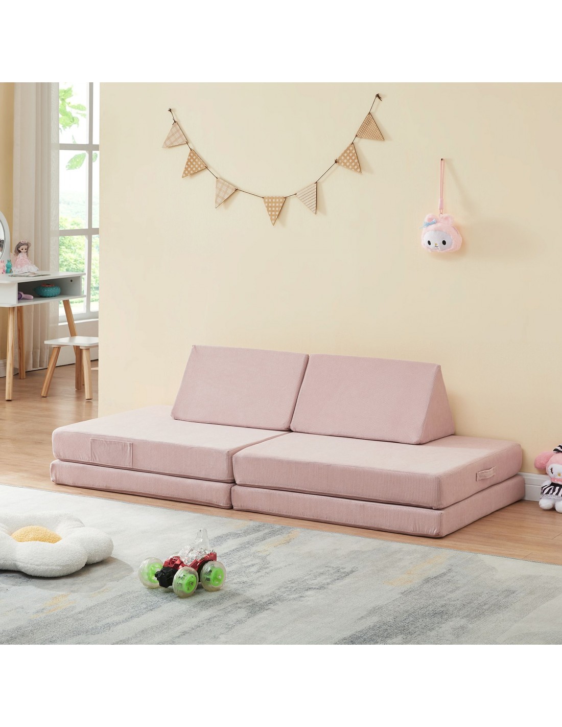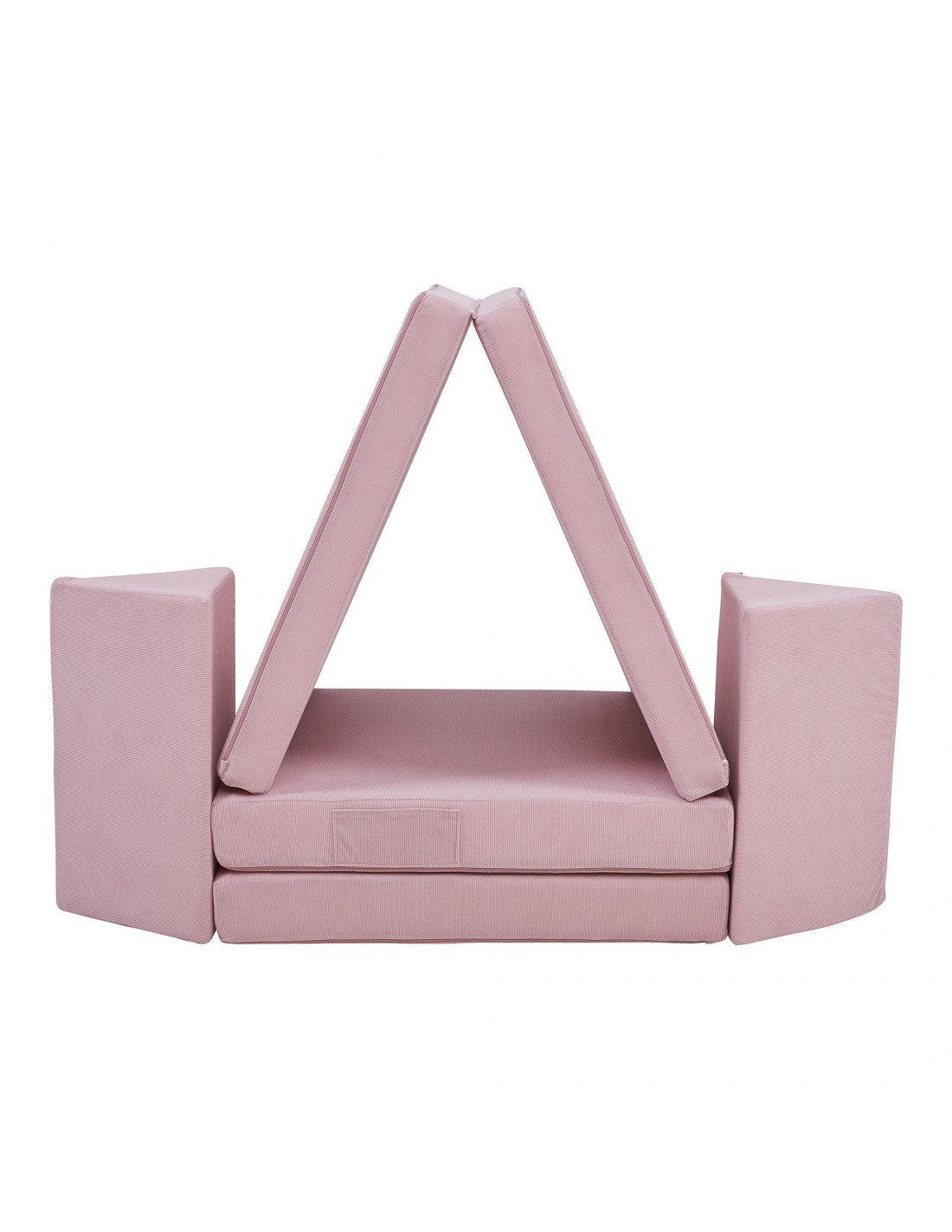 Tumle børnesofa udført i et design af rosa corduroy polyester med skumfyld. Opsæt sofaen efter ønske, og lad børnene lege med de forskellige moduler. Opsættes sofaen som en sofa, så måler den 150 x 66 cm i bredde og dybde.