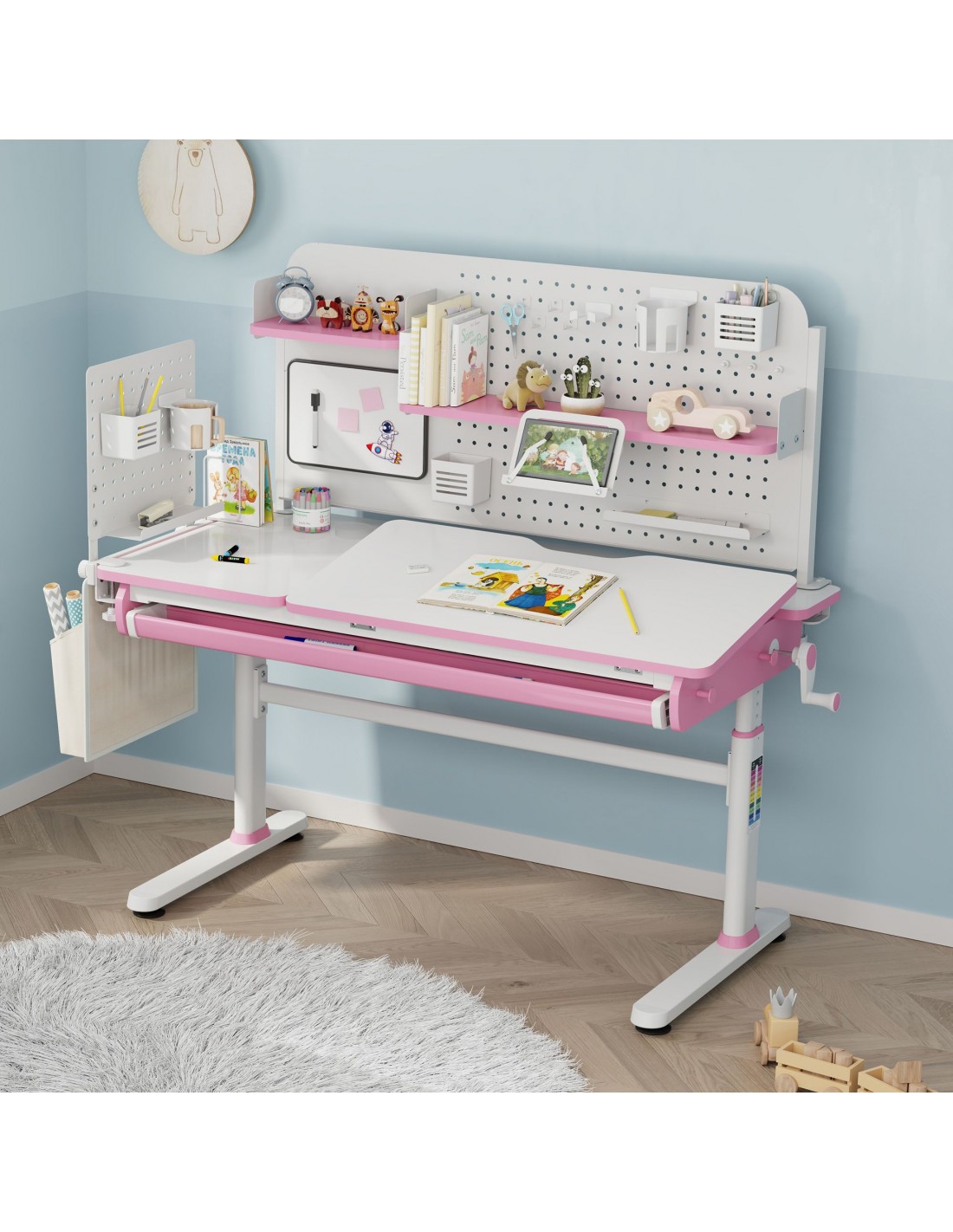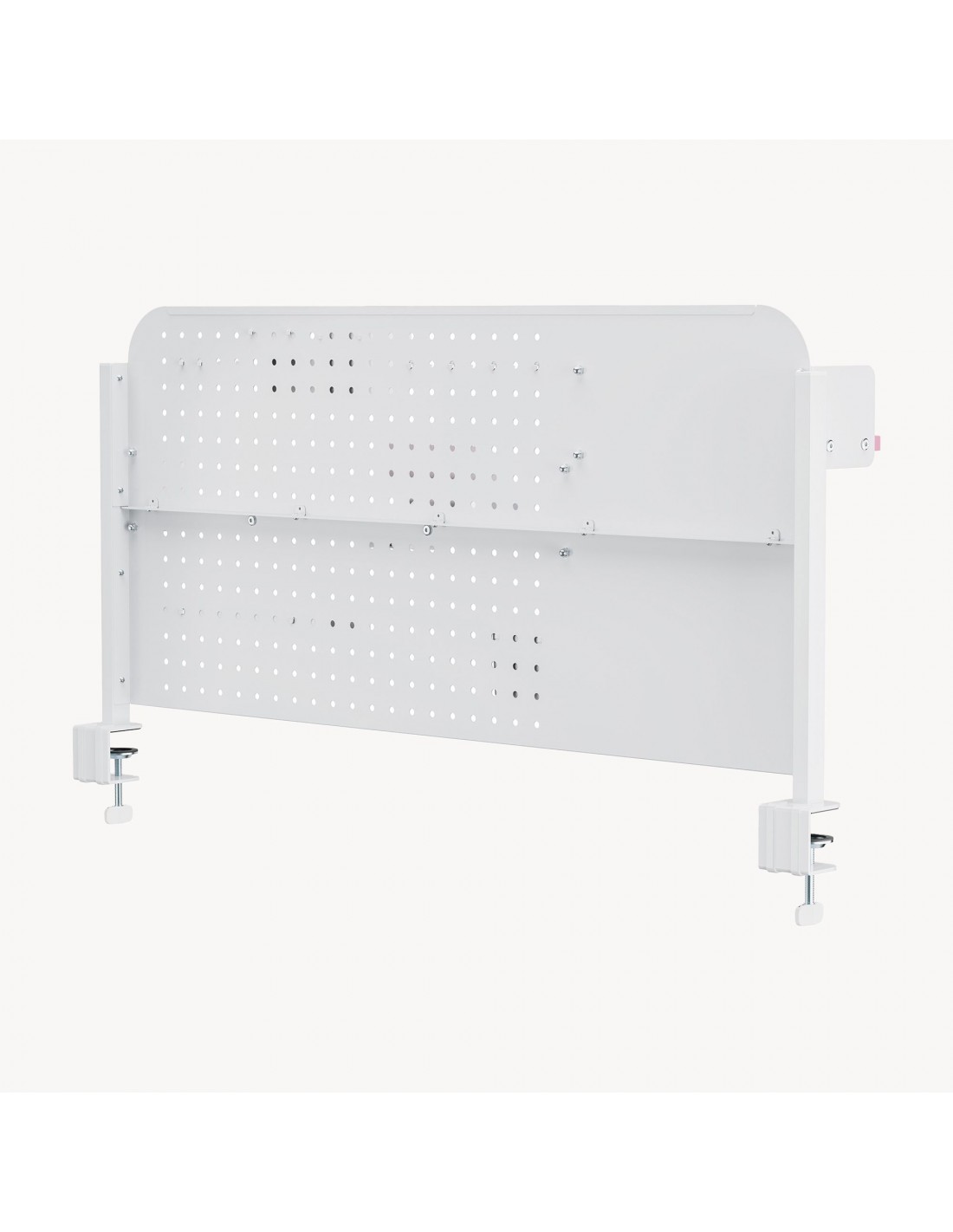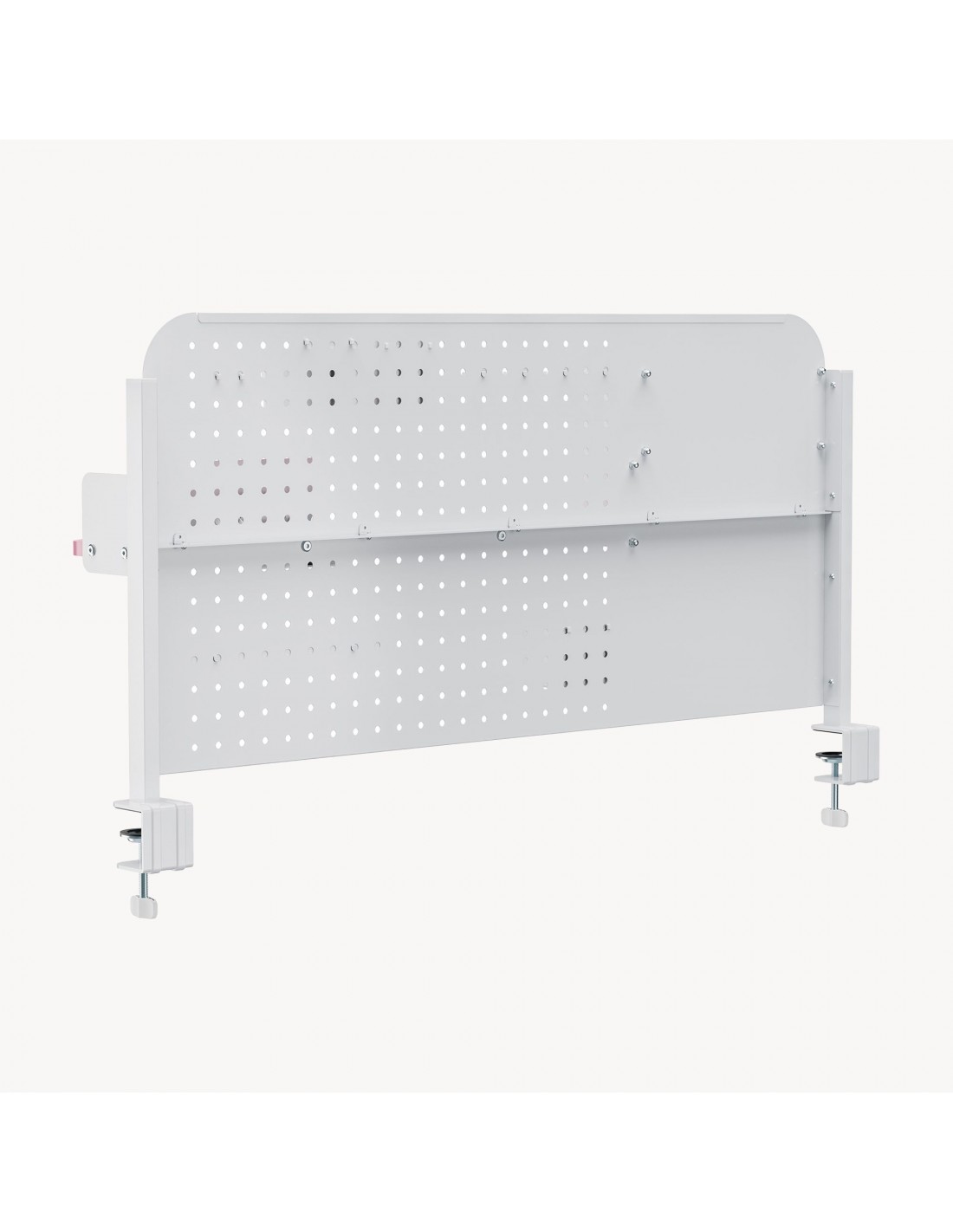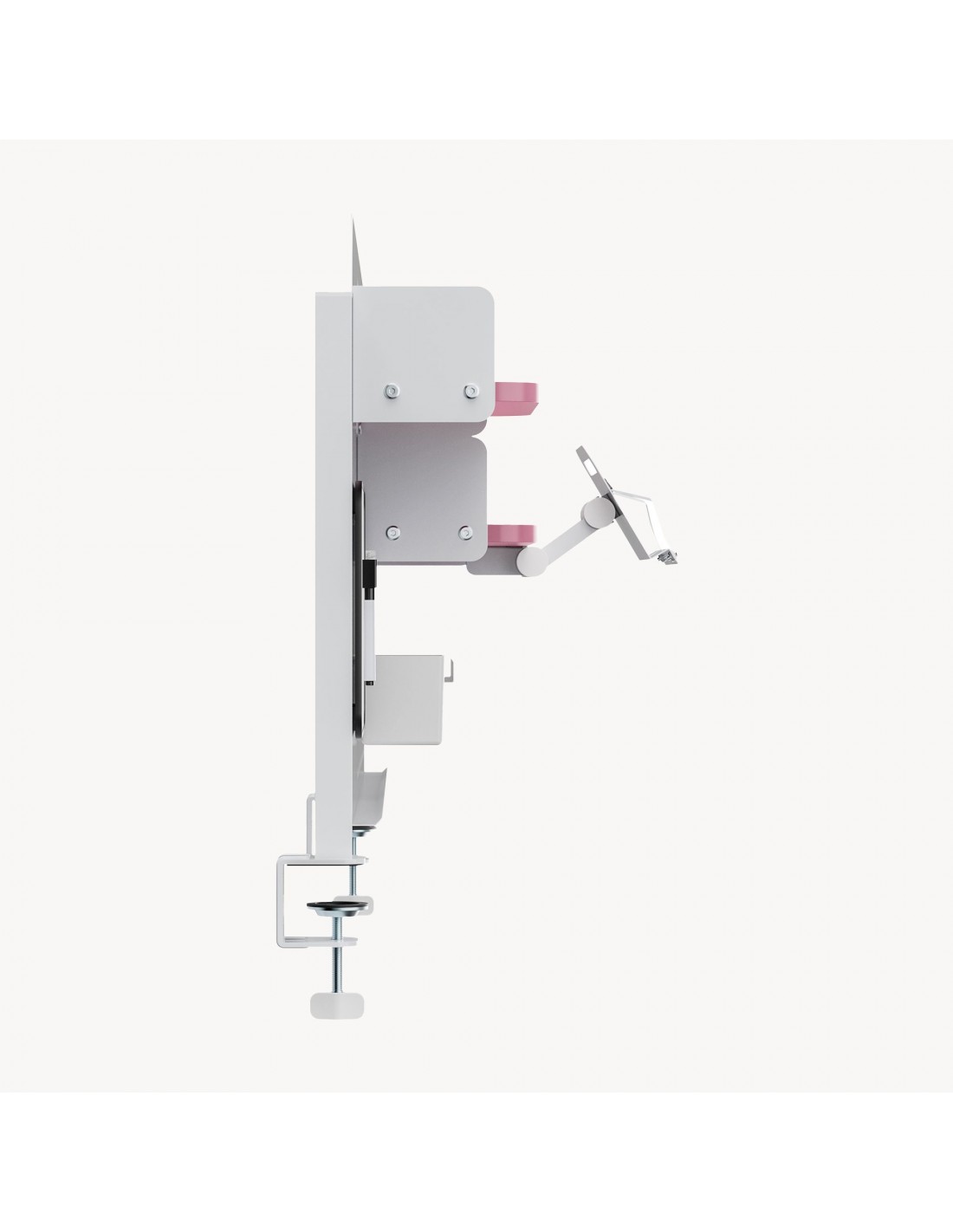 Organiser til skrivebord, udført i et design af hvidlakeret stål og rosa møbelplade. Organiseren måler 62,5 - 67,5 cm i højden og 114 x 16 cm i bredde og dybde. Til organiseren medfølger tilbehør som vist på produktbillederne.
