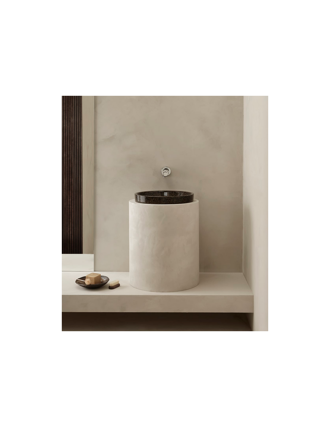 Woodio Soft40 nedfældet håndvask fremstillet i bæredygtige materialer fra de Finske skove (80% ren træ/20% resin) og udført i en blød form, der gør håndvasken meget behageligt at røre ved. Håndvasken måler 40 cm i diameter.