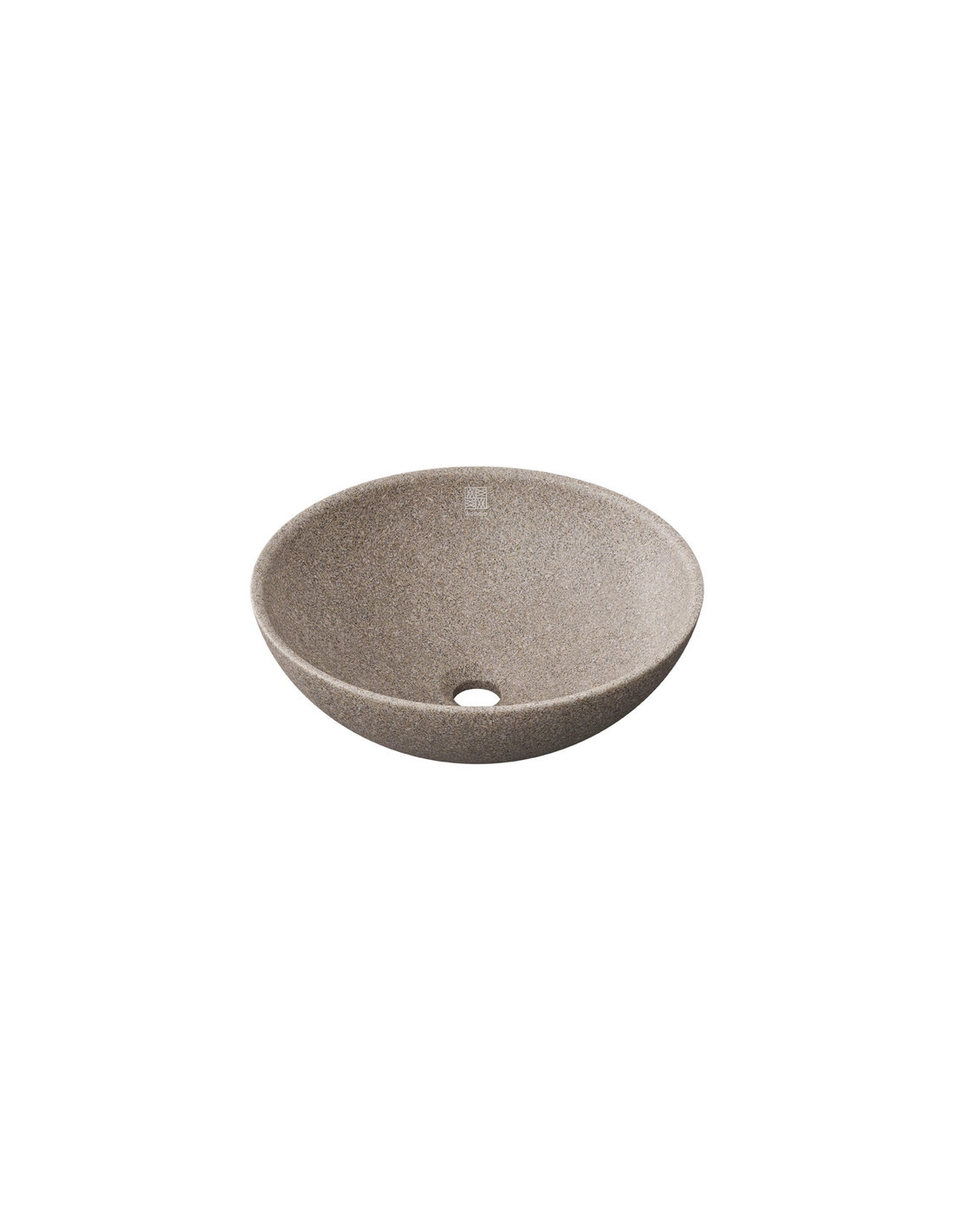 Woodio Soft40 bordmonteret håndvask fremstillet i bæredygtige materialer fra de Finske skove (80% ren træ/20% resin) og udført i en blød form, der gør håndvasken meget behageligt at røre ved. Håndvasken måler 40 cm i diameter.