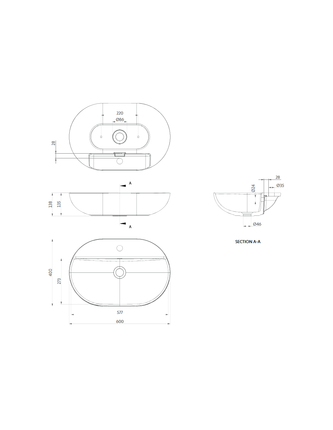 Woodio Soft40 oval bordmonteret håndvask med hanehul, fremstillet i bæredygtige materialer fra de Finske skove (80% ren træ/20% resin) og udført i en blød form, der gør håndvasken meget behageligt at røre ved. Håndvasken måler 60 x 40 cm i bredde og dybde.