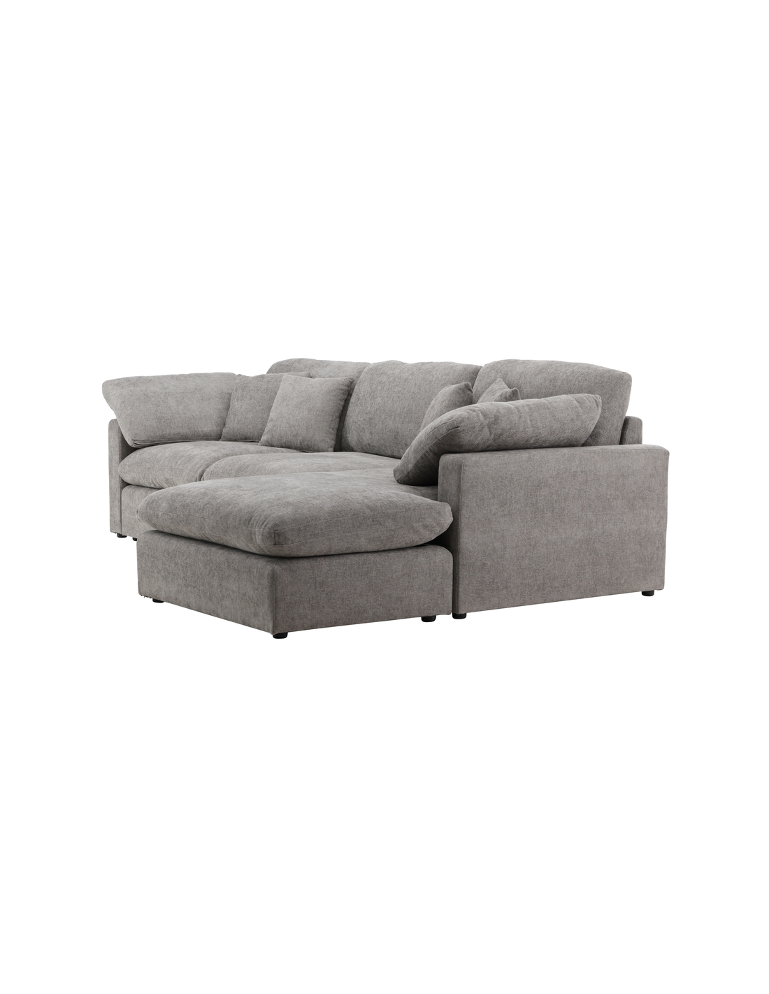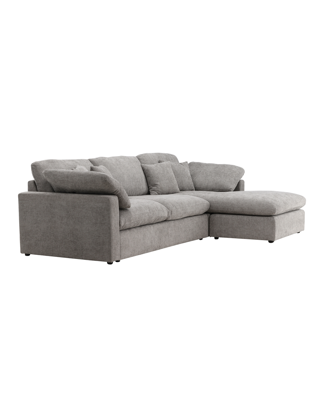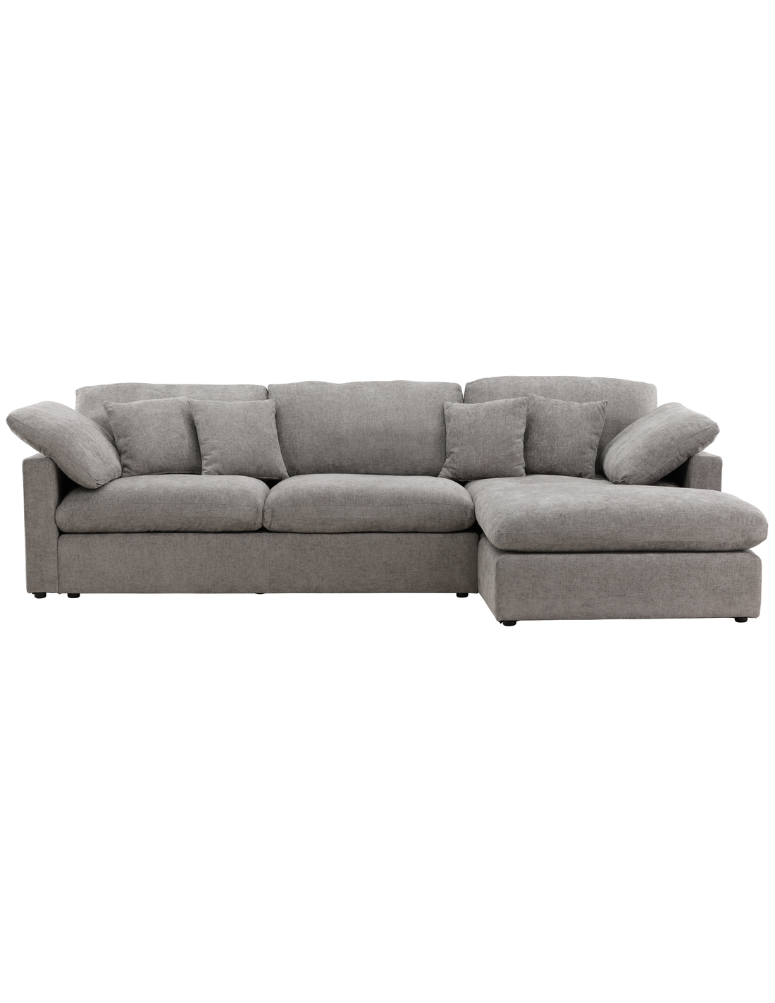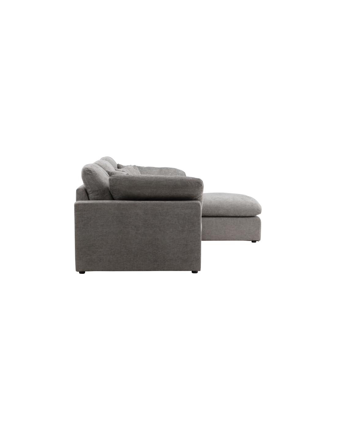 AMALFI Chaiselongsofa udført i et moderne design fremstillet i mørkegrå polyester og med ben i sort kunststof. Chaiselongdelen kan sættes efter ønske, højre eller venstre. Sofaen måler 85 cm i højden over ryggen og med siddehøjde på 46 cm. Sofaens bredde og dybde er 297 x 107 - 182 cm. En sand flyder sofa perfekt til ren afslapning eller samvær med familien.