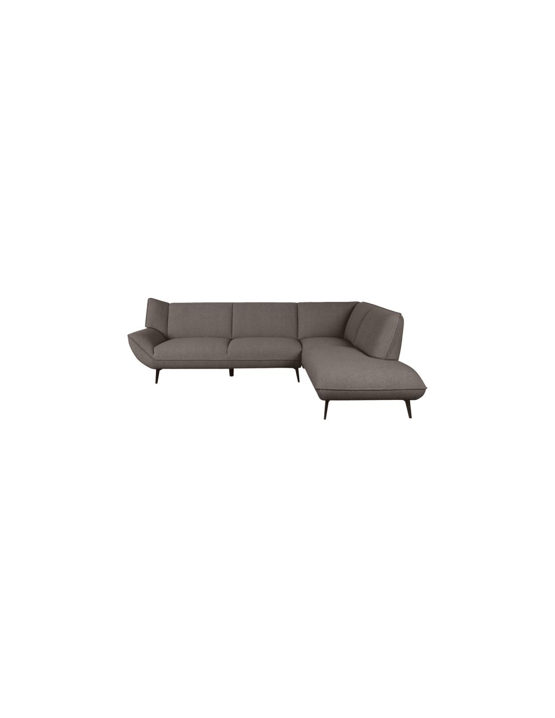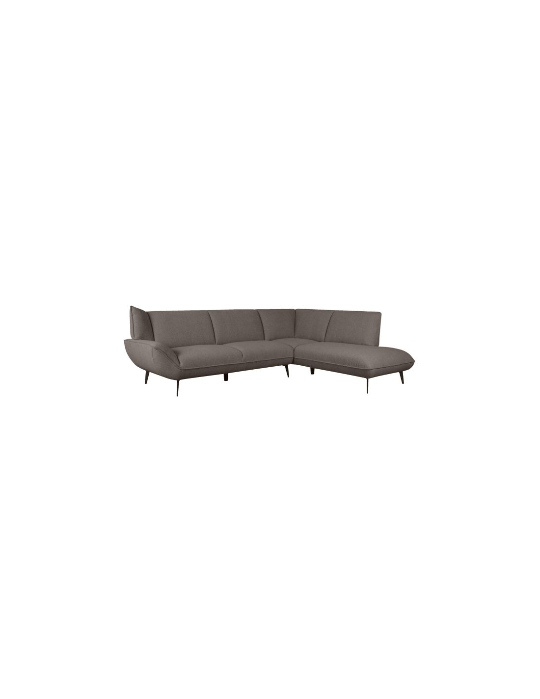 PESARO Højrevendt chaiselong sofa udført i et design, fremstillet i sortlakeret metal og brun bouclé polyester. Sofaen måler 82 cm i højden over ryggen og 274 x 203 cm i bredde og dybde.