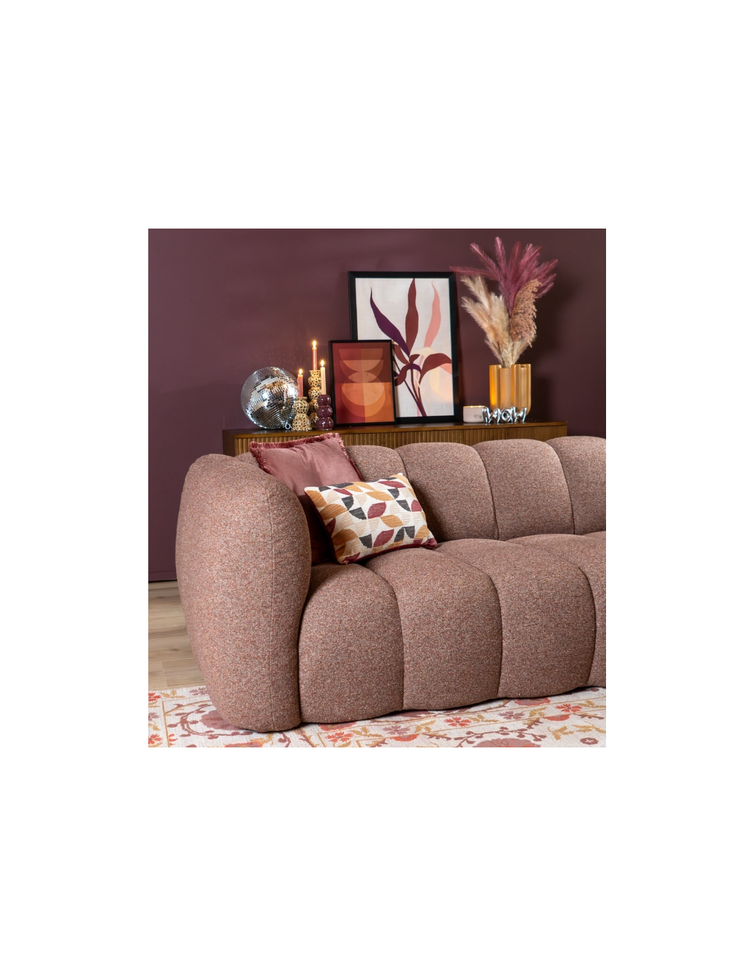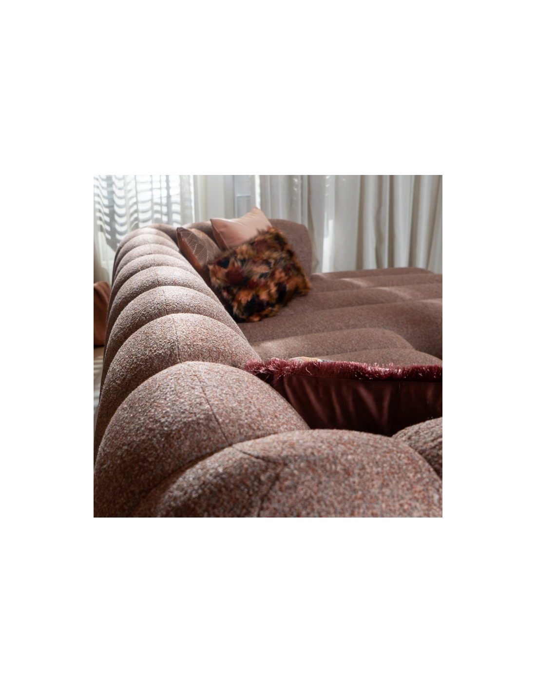 LUCA Chaiselongsofa med højrevendt chaiselong, udført i et moderne design fremstillet i rosarød slidstærkt bouclé polyester. Sofaen måler 74 cm i højden over ryggen og med siddehøjde på 43 cm. Sofaens bredde og dybde er 294 x 175 cm.