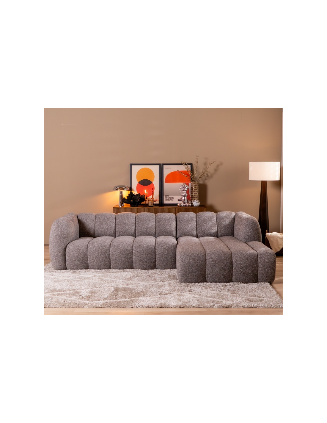 LUCA Højrevendt chaiselongsofa i bouclé B294 x D175 cm - Gråbrun