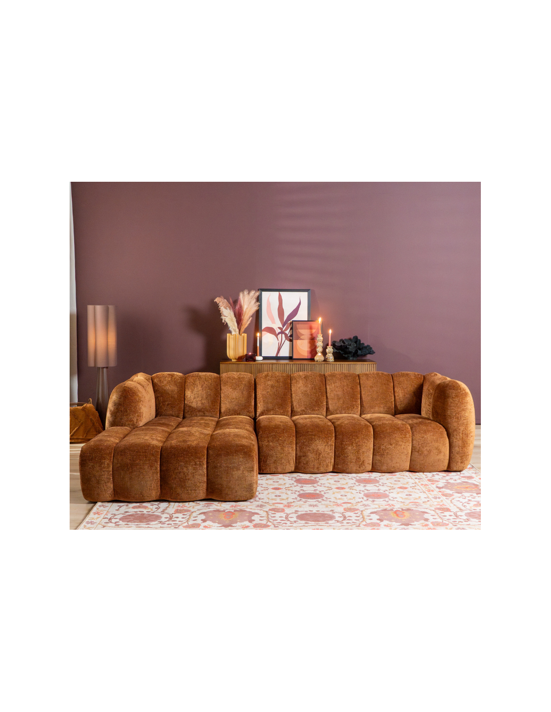 LUCA Venstrevendt chaiselongsofa i chenille B294 x D175 cm - Kobberbrun