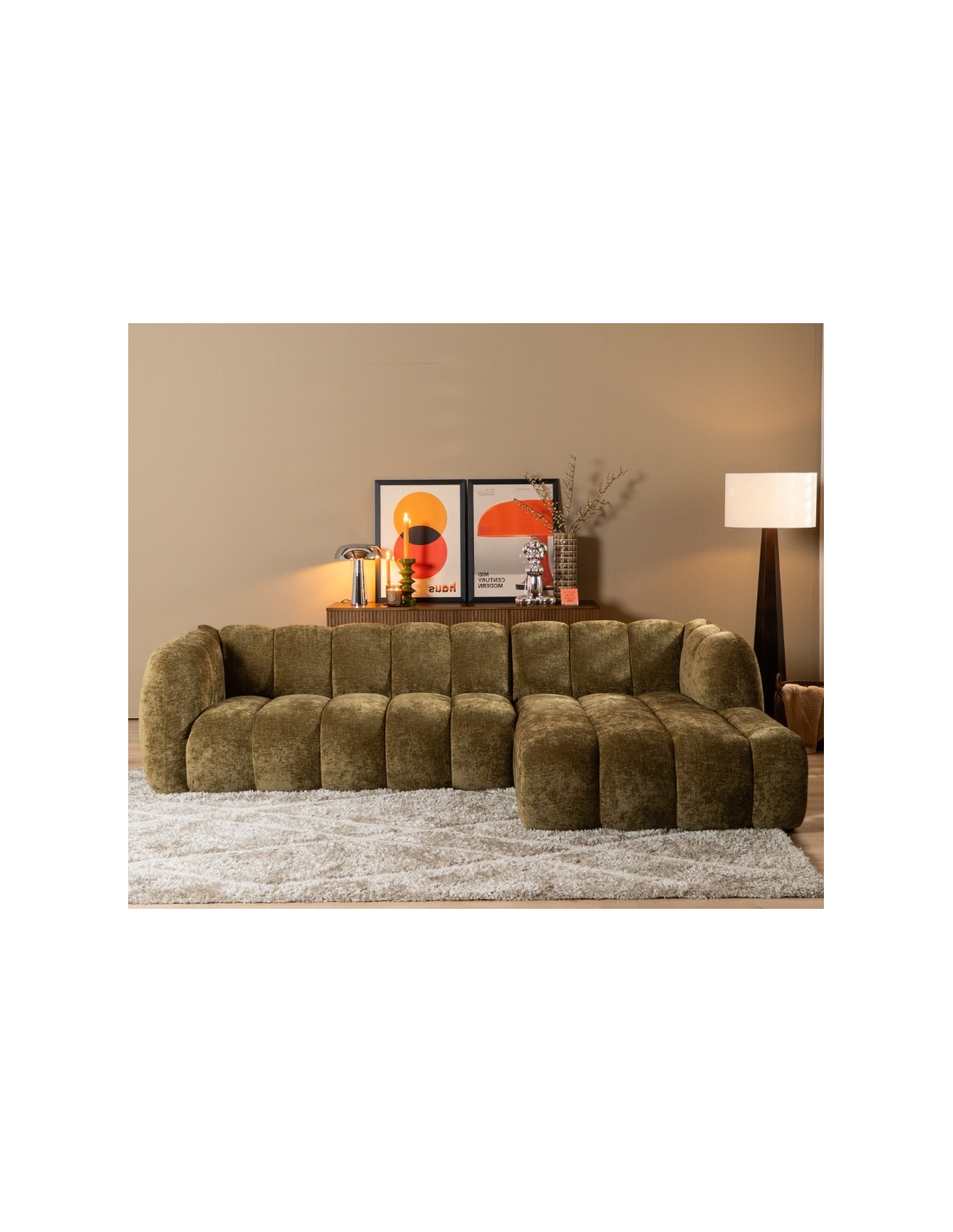 LUCA Højrevendt chaiselongsofa i chenille B294 x D175 cm - Olivengrøn
