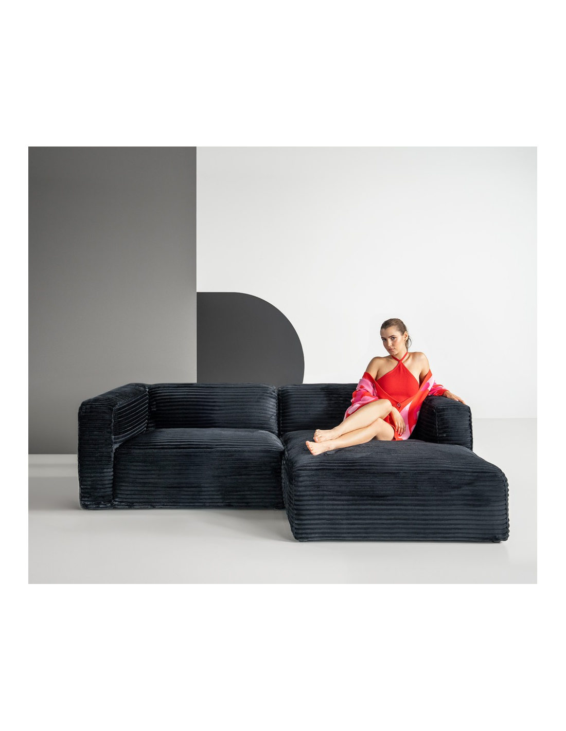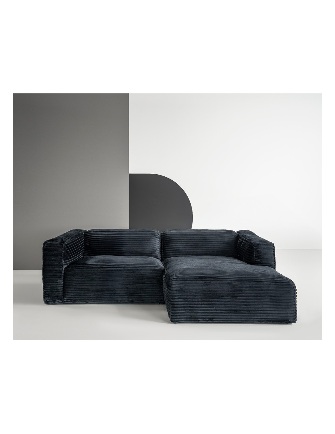 MOVED Højrevendt chaiselongsofa i fløjl B232 x D163 cm - Gråsort