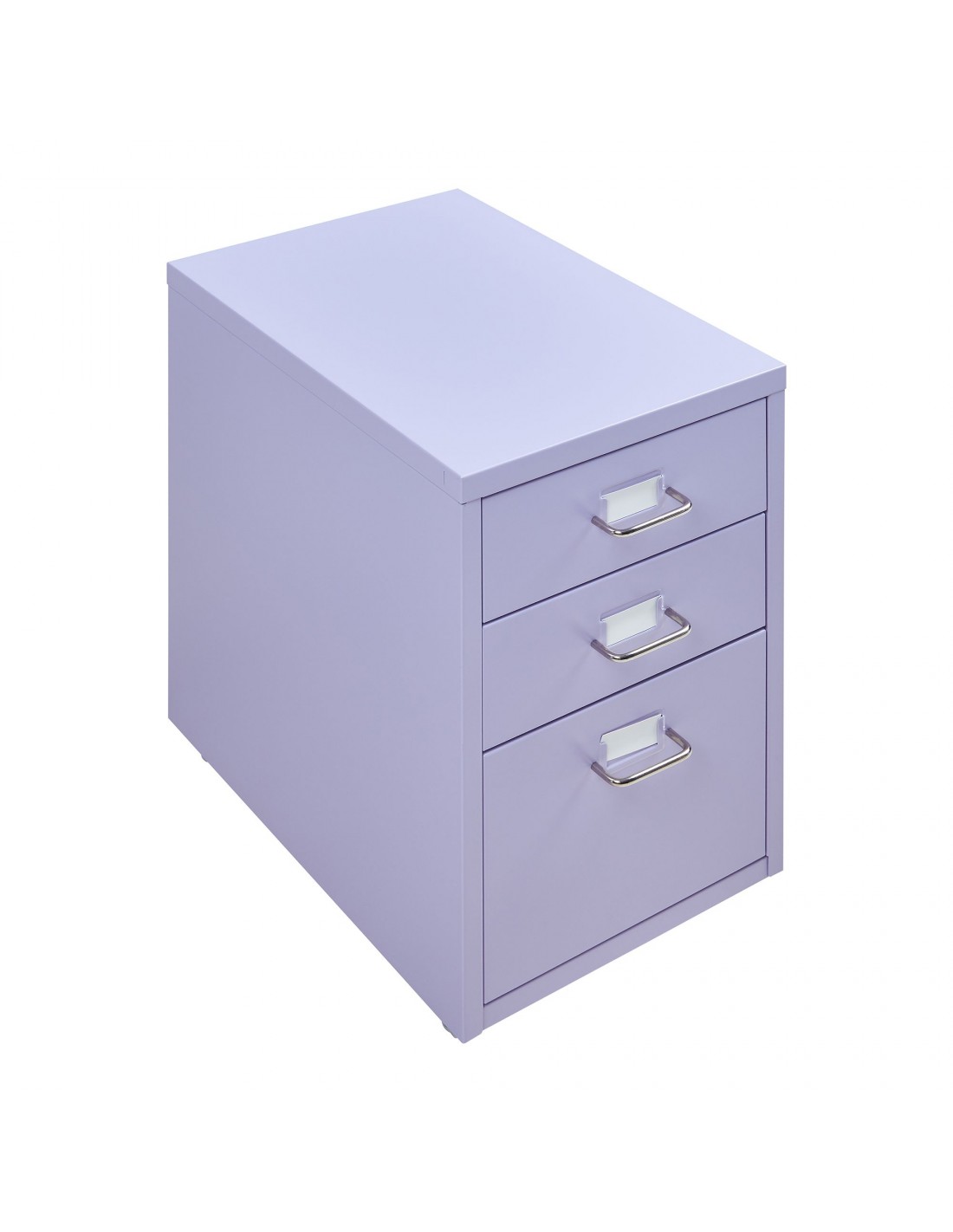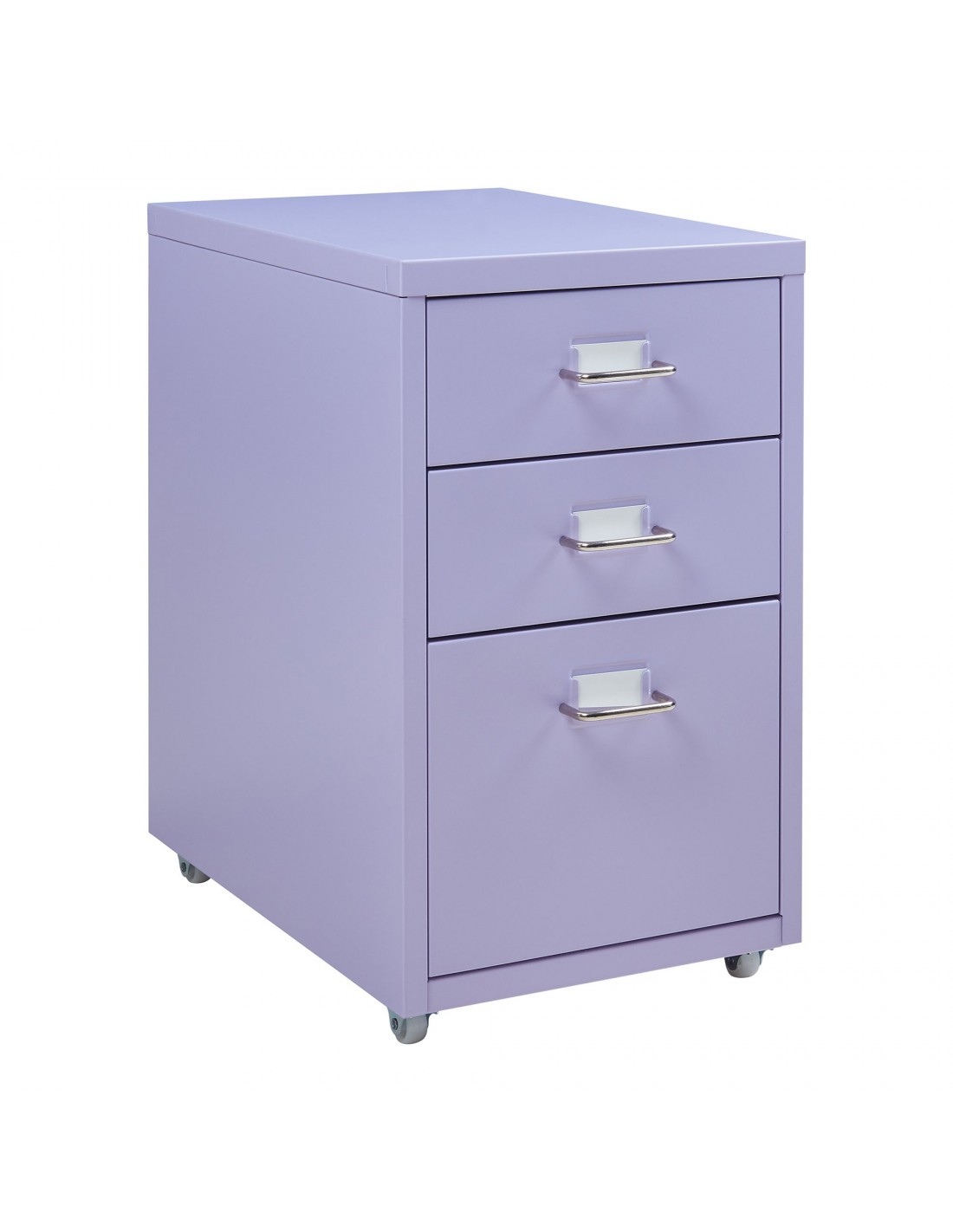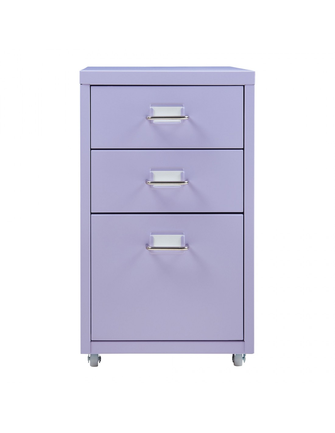 Koka skuffesektion med 3 skuffer, udført i et design af lilla lakeret metal. Skuffesektionen måler 48 cm i højden og 28 x 41 cm i bredde og dybde.