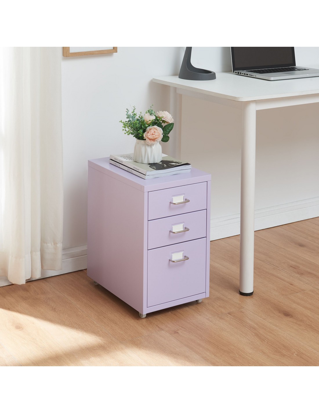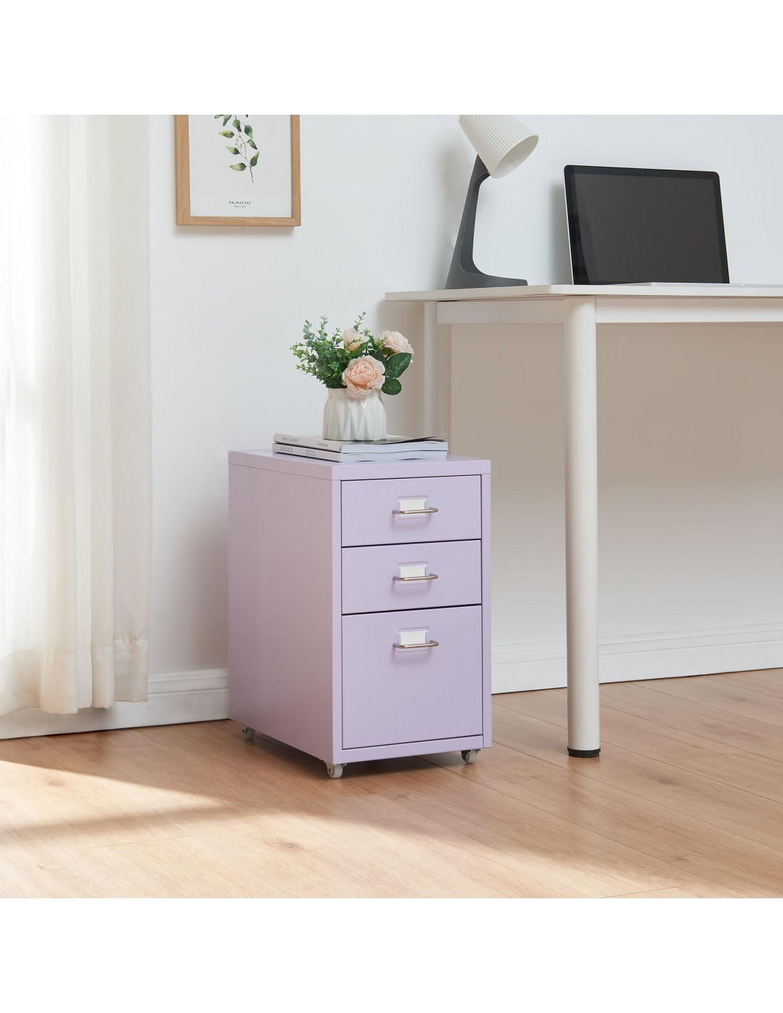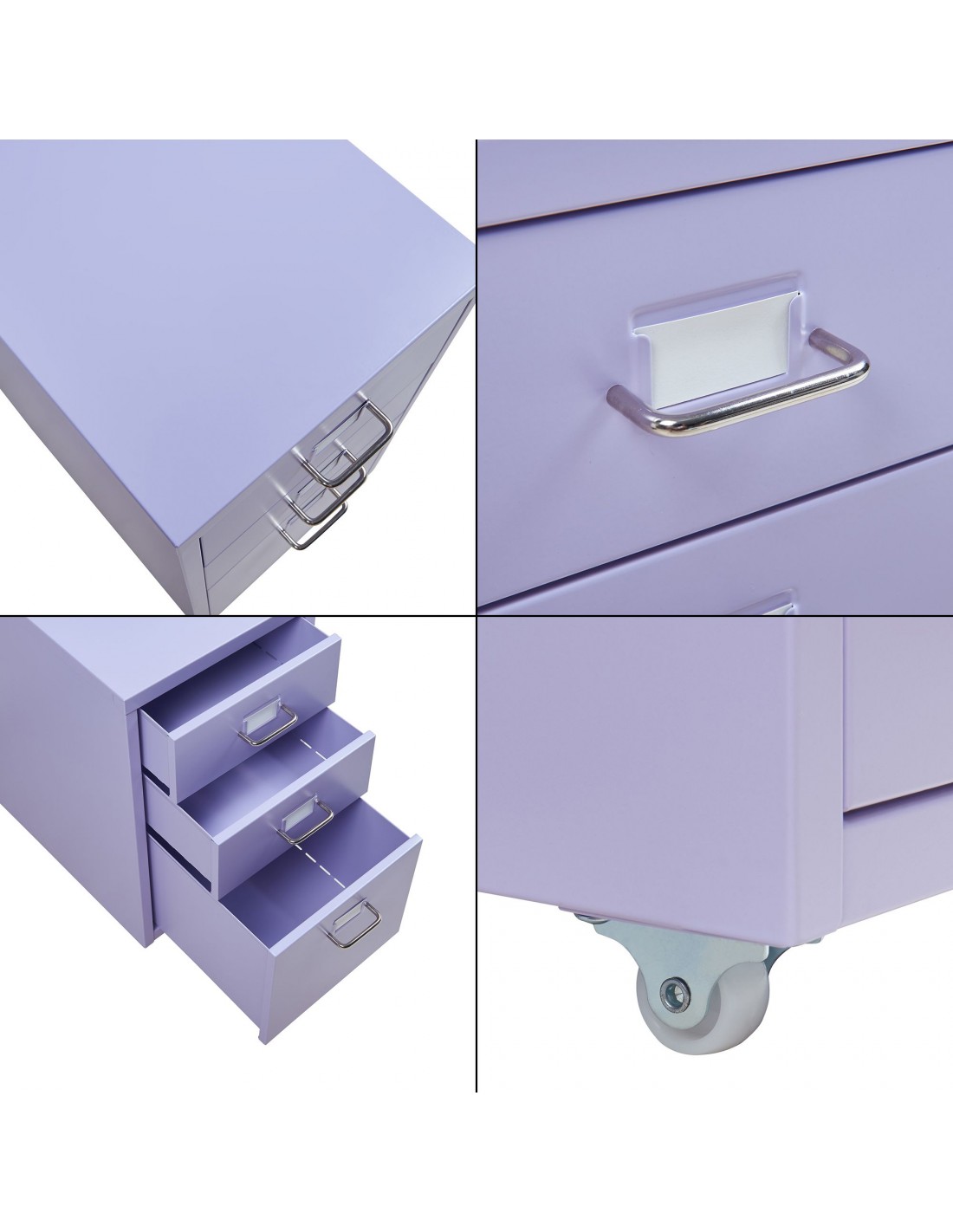 Koka skuffesektion med 3 skuffer, udført i et design af lilla lakeret metal. Skuffesektionen måler 48 cm i højden og 28 x 41 cm i bredde og dybde.