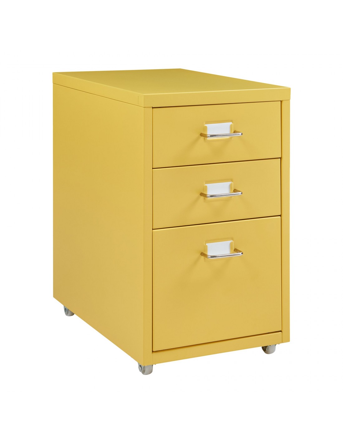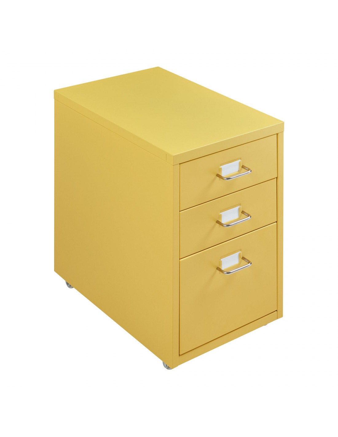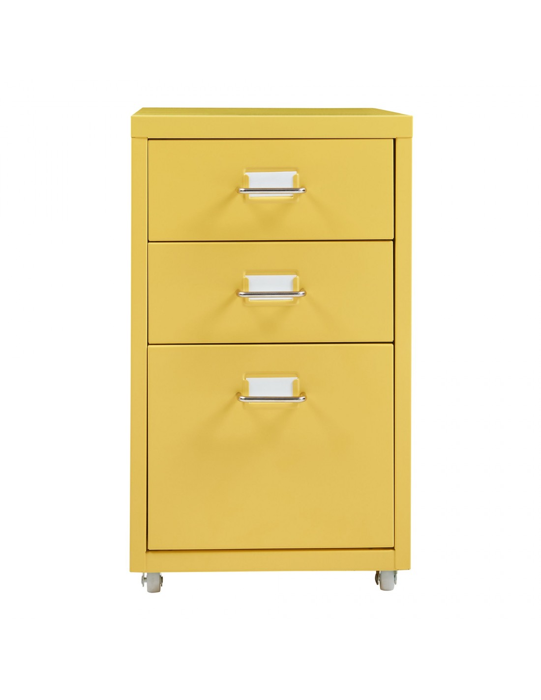 Koka skuffesektion med 3 skuffer, udført i et design af gul lakeret metal. Skuffesektionen måler 48 cm i højden og 28 x 41 cm i bredde og dybde.