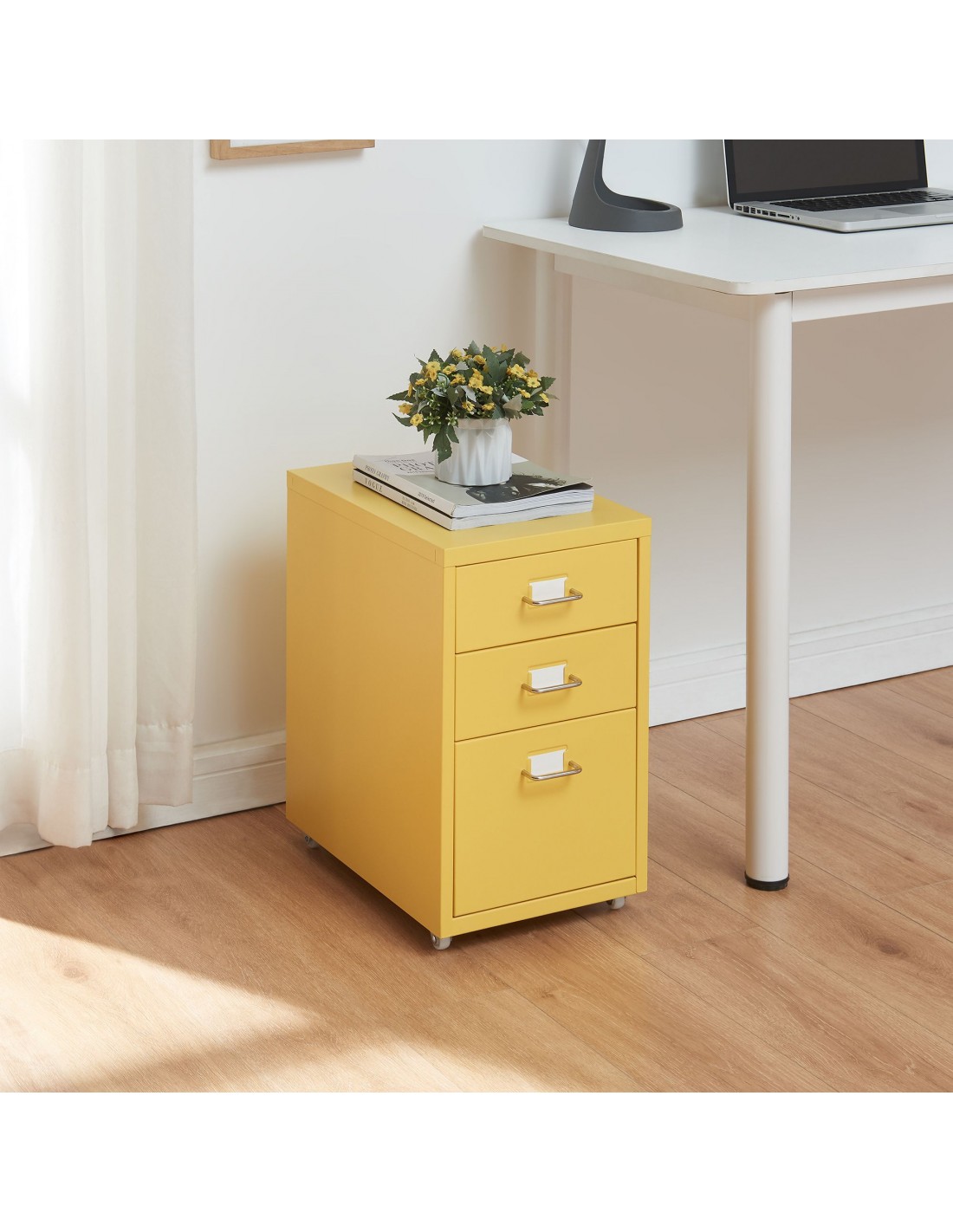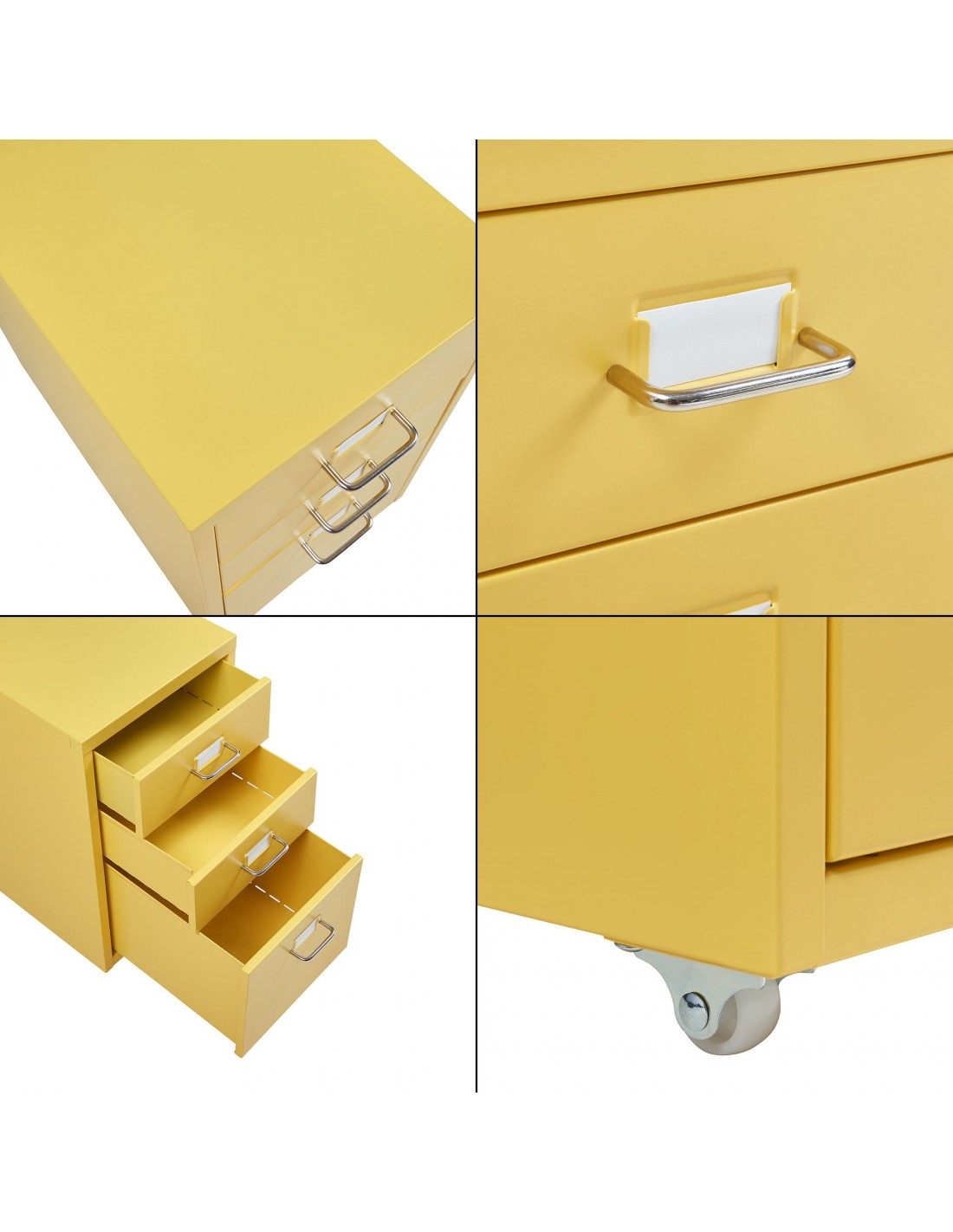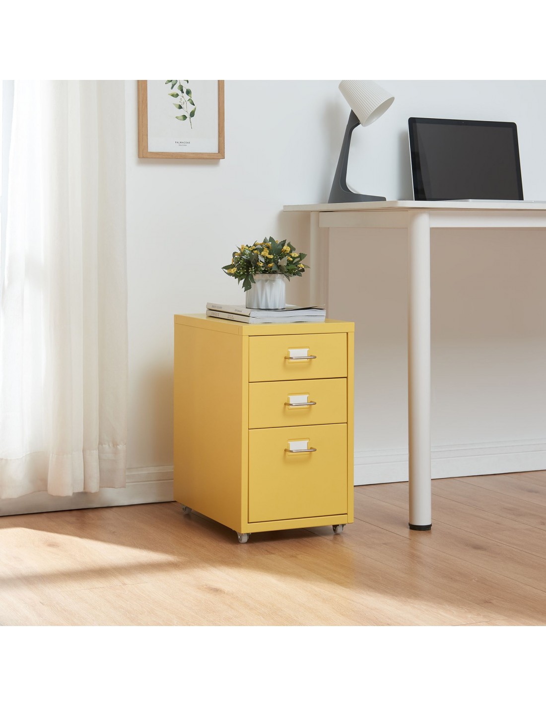 Koka skuffesektion med 3 skuffer, udført i et design af gul lakeret metal. Skuffesektionen måler 48 cm i højden og 28 x 41 cm i bredde og dybde.