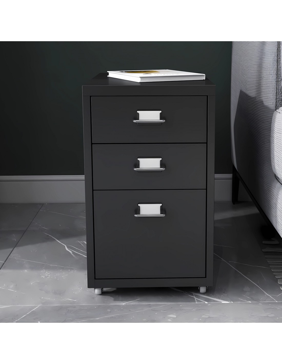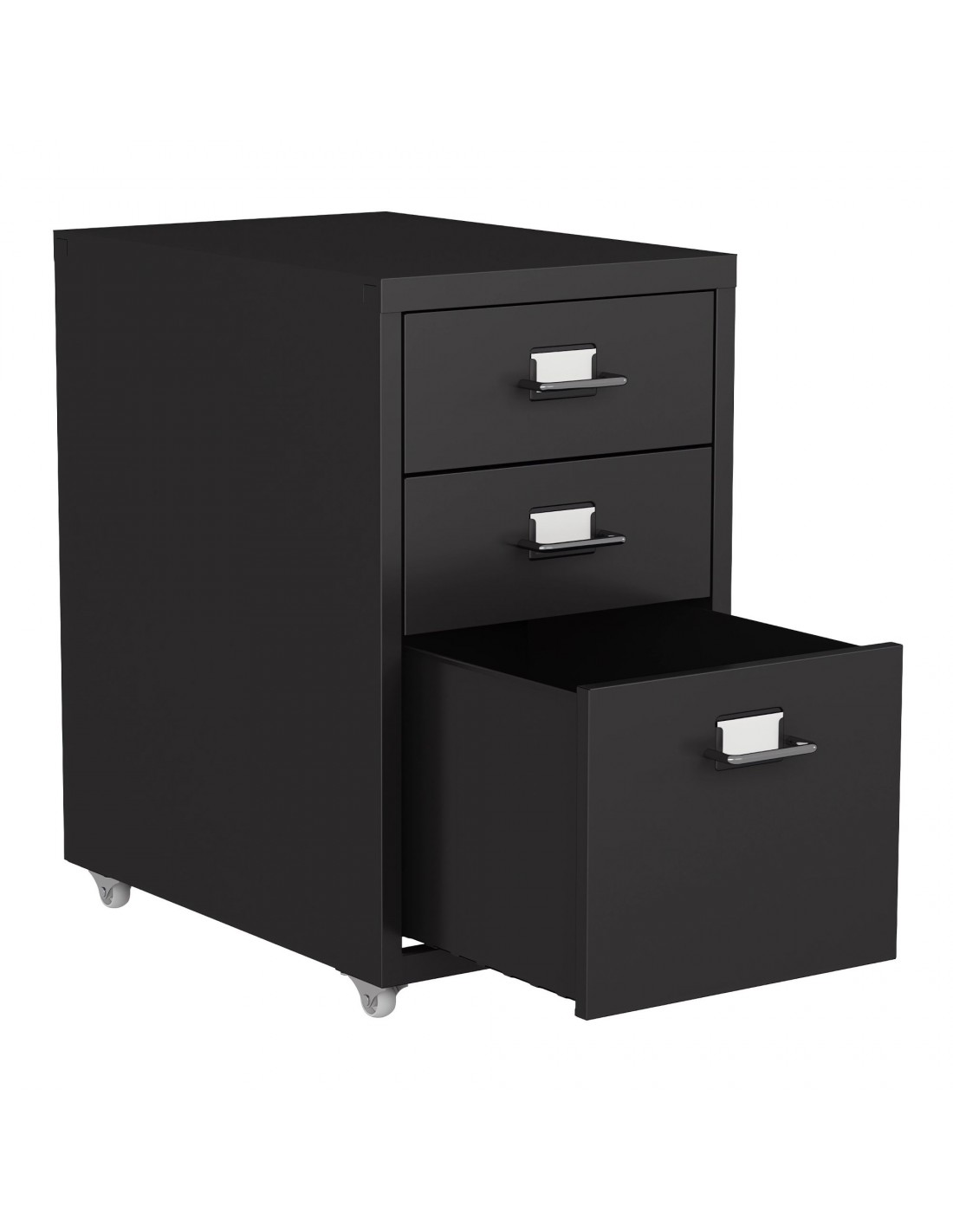 Koka skuffesektion med 3 skuffer, udført i et design af sortlakeret metal. Skuffesektionen måler 48 cm i højden og 28 x 41 cm i bredde og dybde.