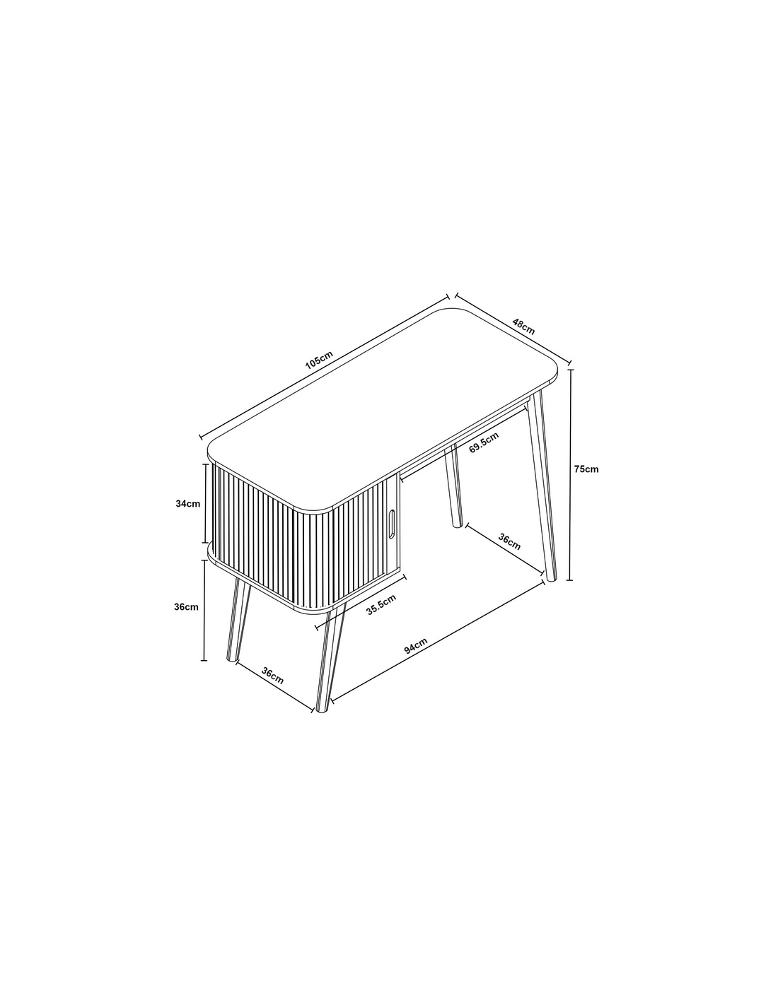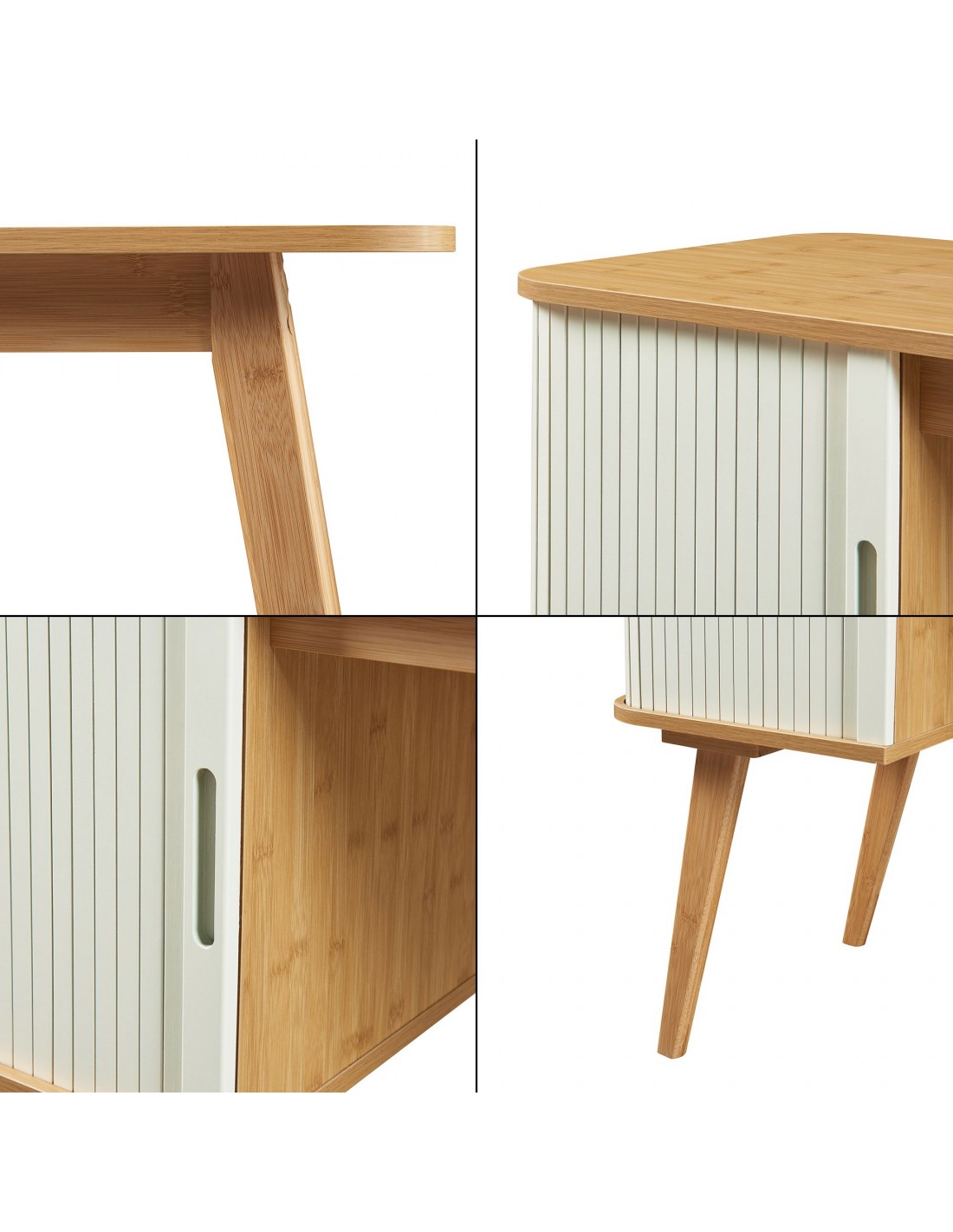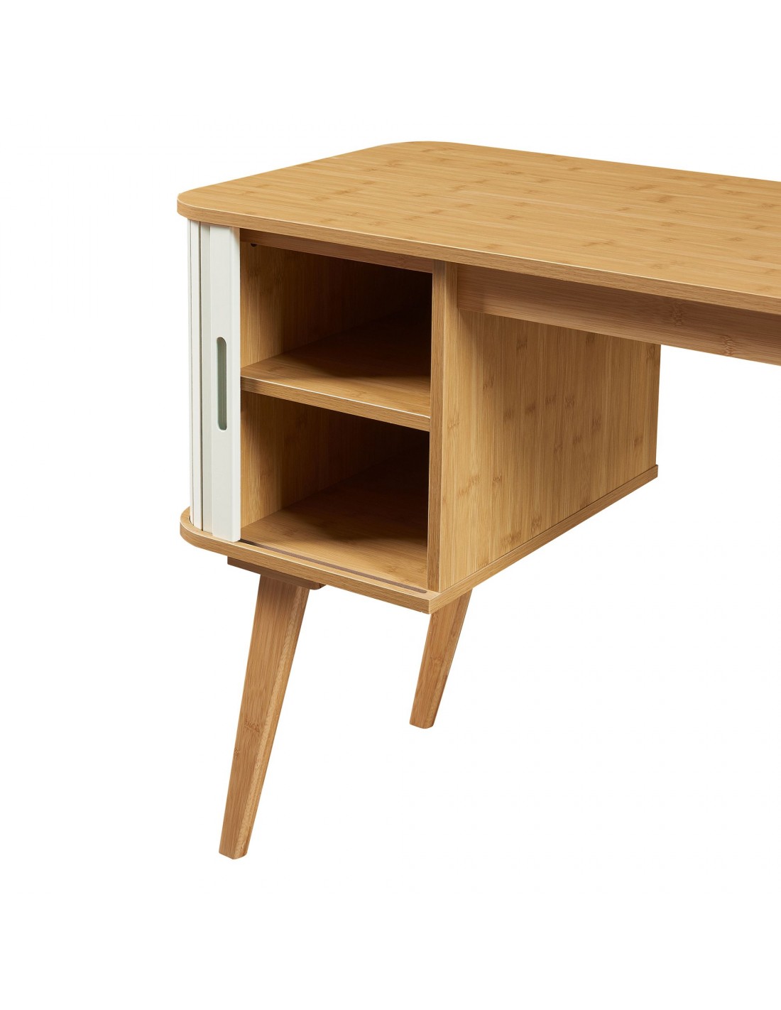TYSVA Skrivebord udført i et moderne og Skandinavisk design af naturfarvet og cremefarvet bambus og MDF. Skrivebordet har 1 skab med skydelåge og måler 75 cm i højden og 105 x 48 cm i bredde og dybde.