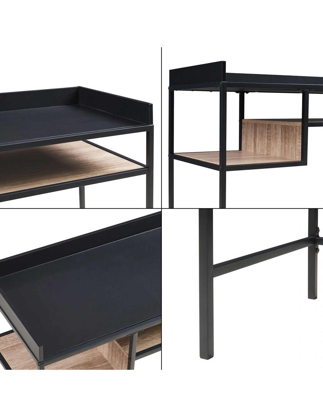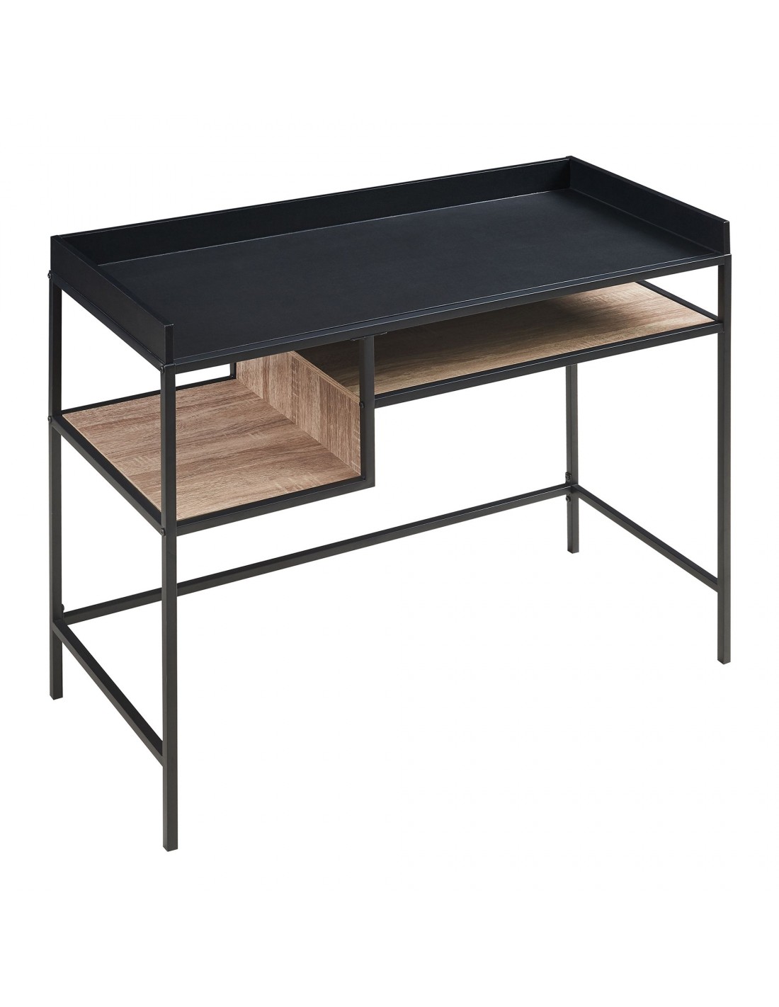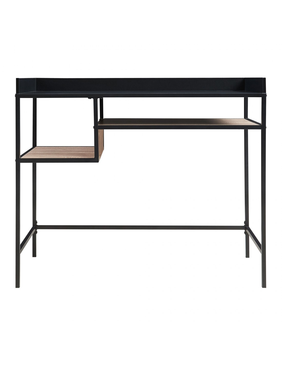 BELA Skrivebord udført i et moderne og Skandinavisk design af sortlakeret metal og egetræsfarvet møbelplade. Skrivebordet har 2 åbne hylderum og måler 76 - 82 cm i højden og 100 x 43 cm i bredde og dybde.