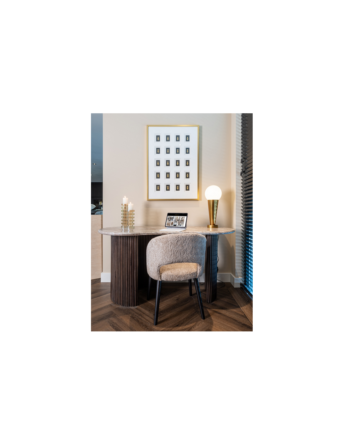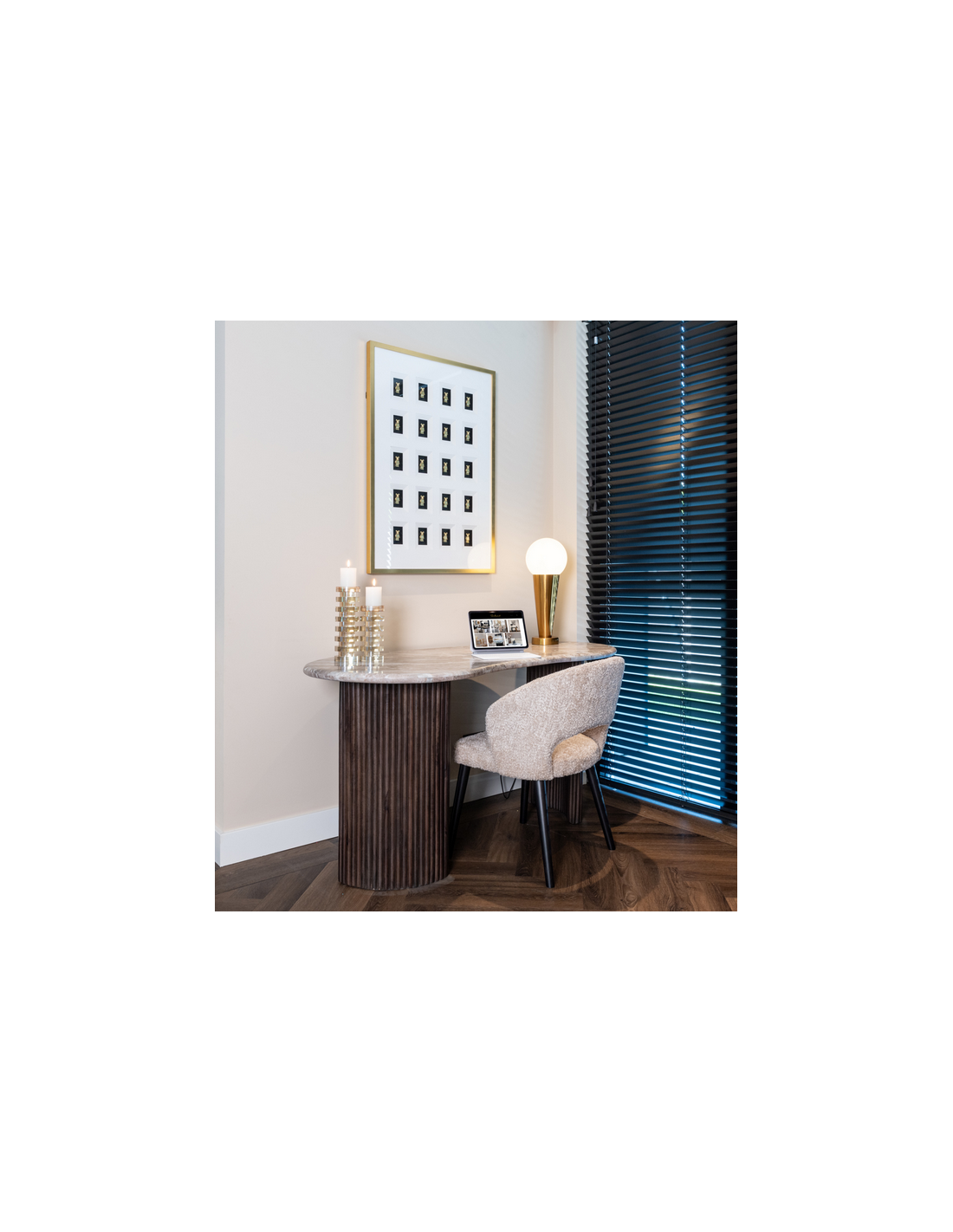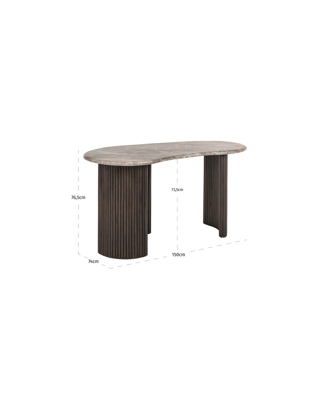 RASHFORD Skrivebord udført i et design fra hollandske Richmond Interiors. Skrivebordet er fremstillet i brunlakeret træ og MDF med bordplade i lysebrun marmor. Skrivebordet måler 76 cm i højden og 150 x 74 cm i bredde og dybde.