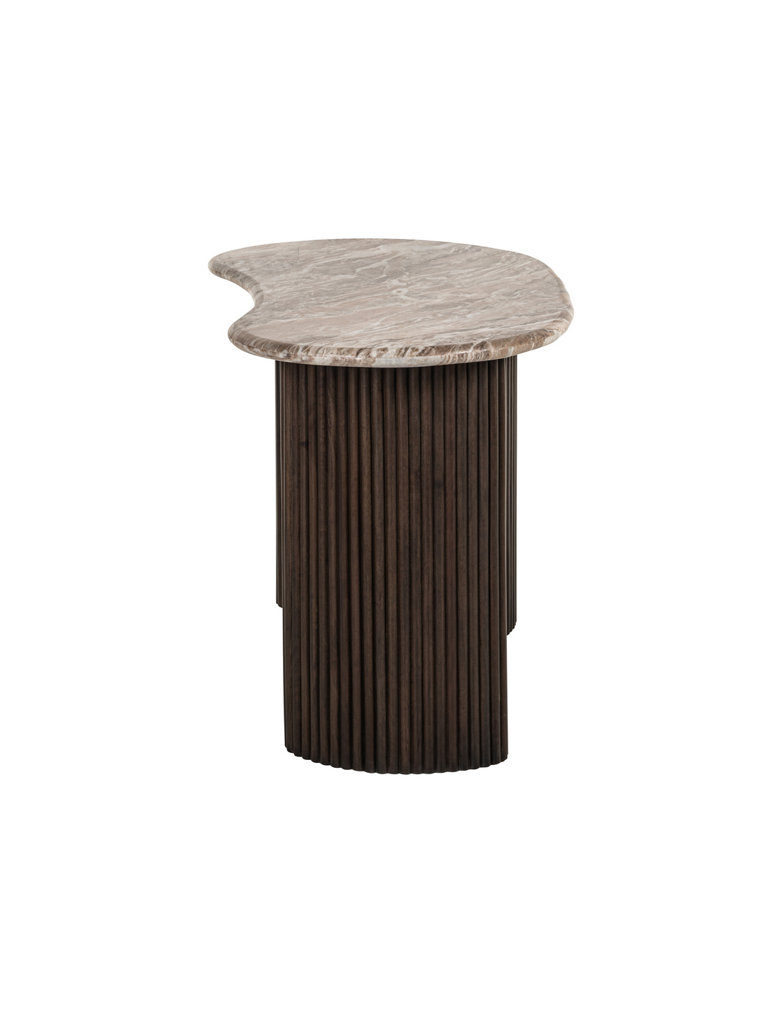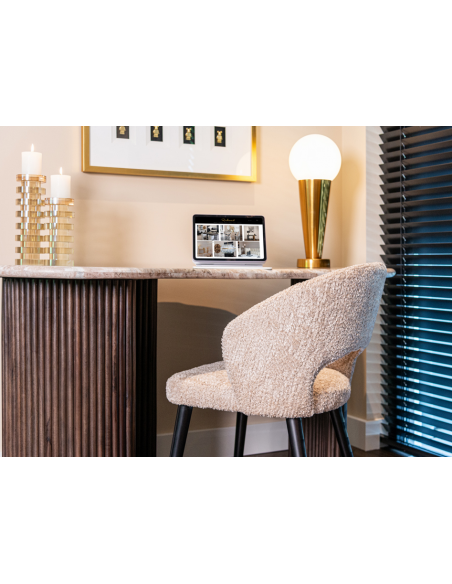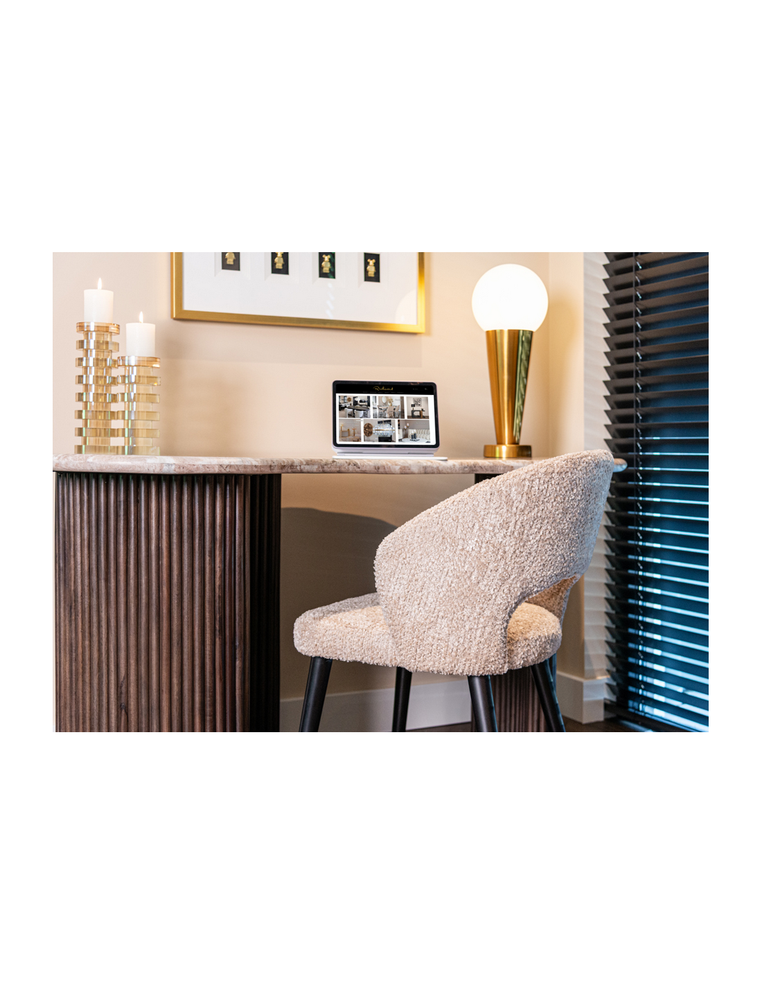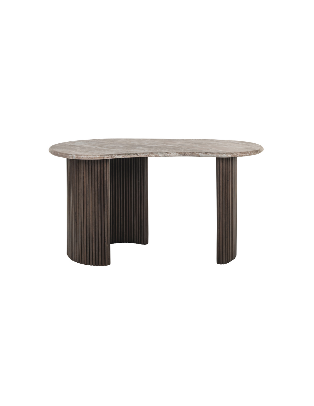 RASHFORD Skrivebord udført i et design fra hollandske Richmond Interiors. Skrivebordet er fremstillet i brunlakeret træ og MDF med bordplade i lysebrun marmor. Skrivebordet måler 76 cm i højden og 150 x 74 cm i bredde og dybde.