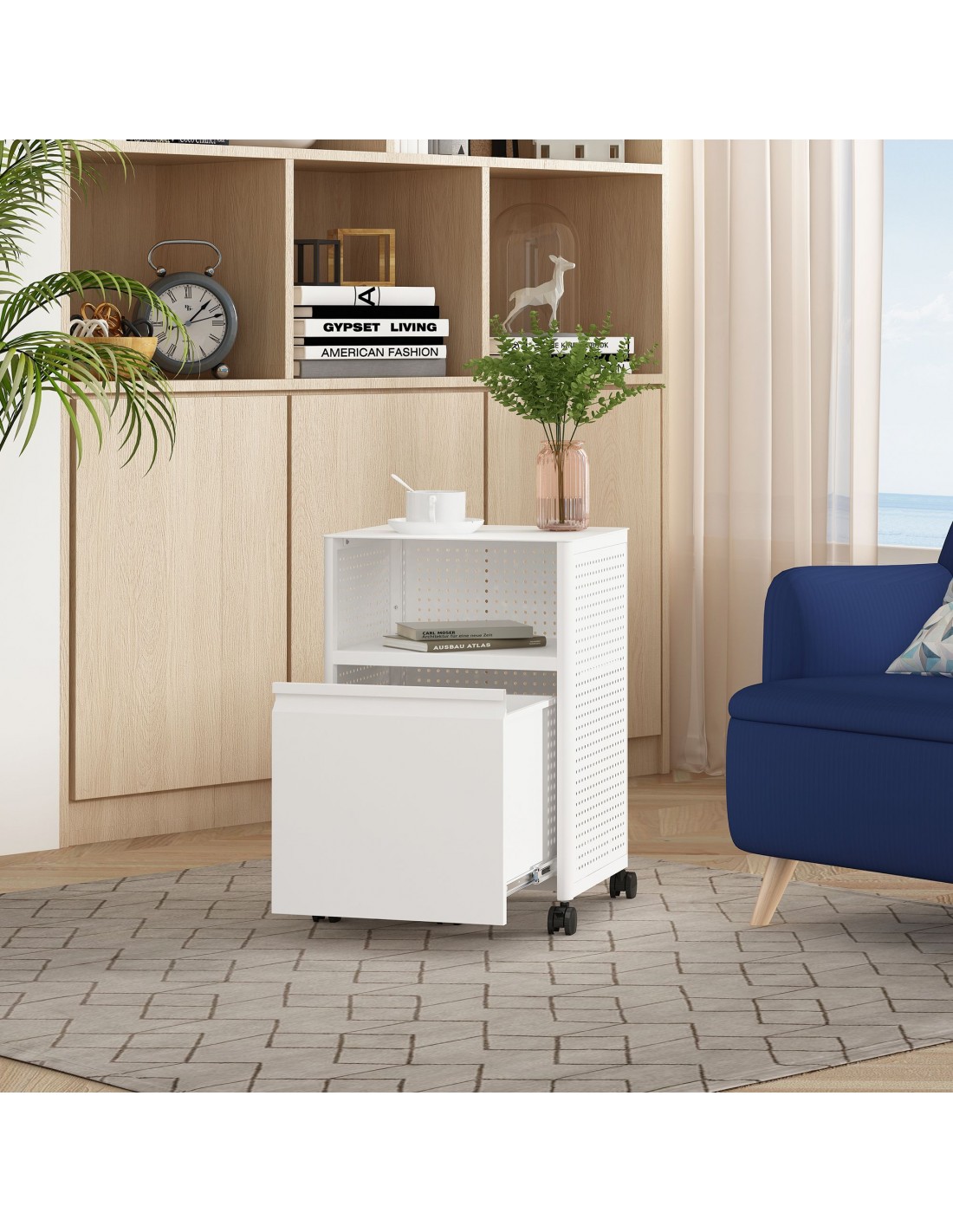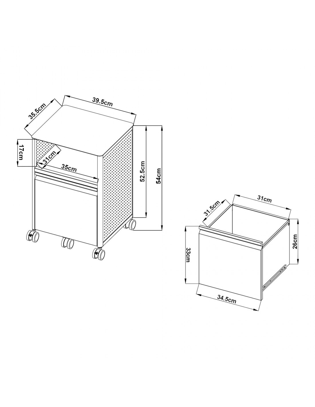 Skuffesektion udført i et design af hvidlakeret stål. Skuffesektionen måler 54 cm i højden og 39,5 x 35,5 cm i bredde og dybde.