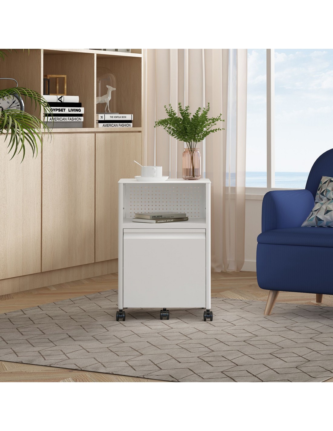 Skuffesektion på hjul i stål H54 x B39,5 x D35,5 cm - Hvid