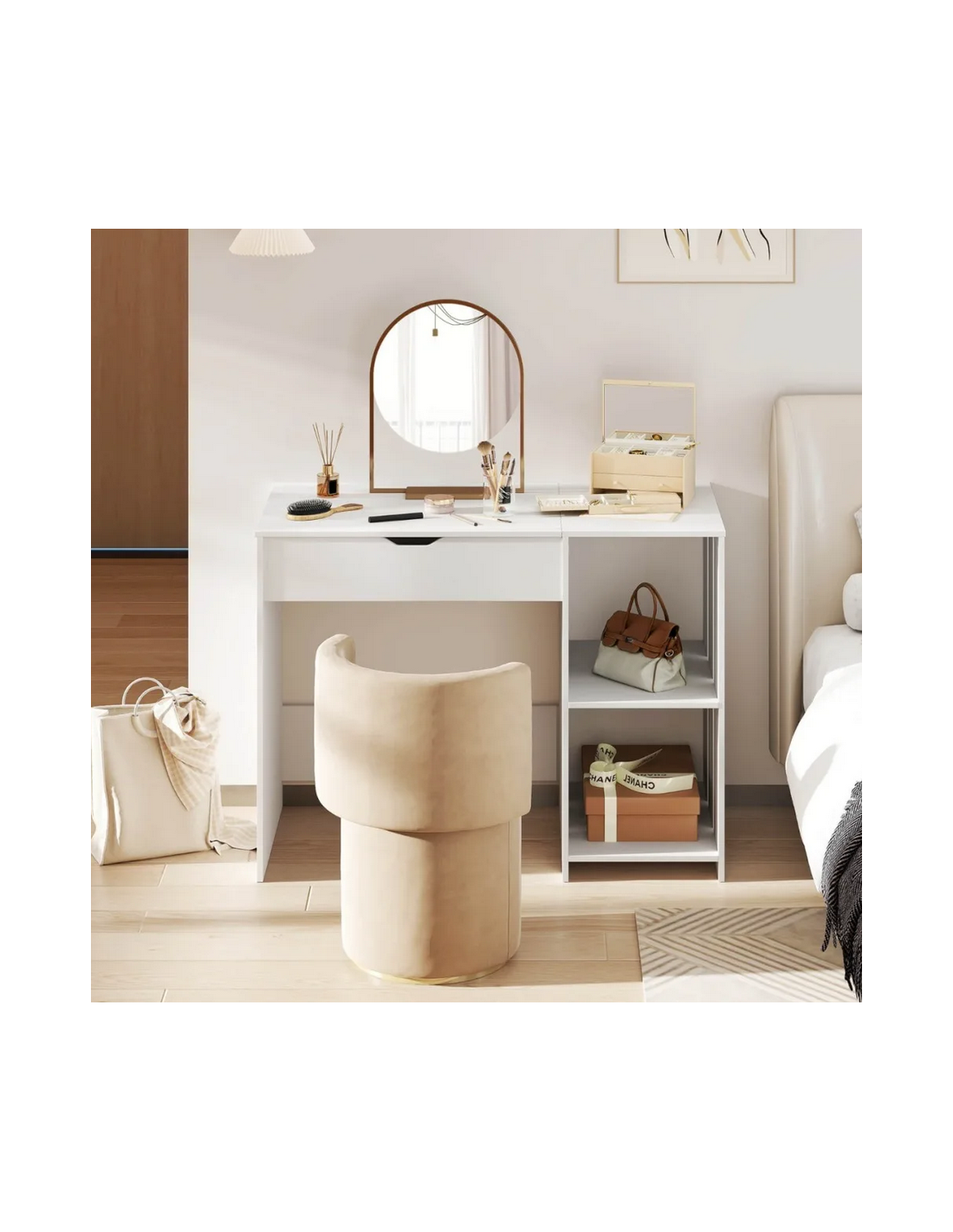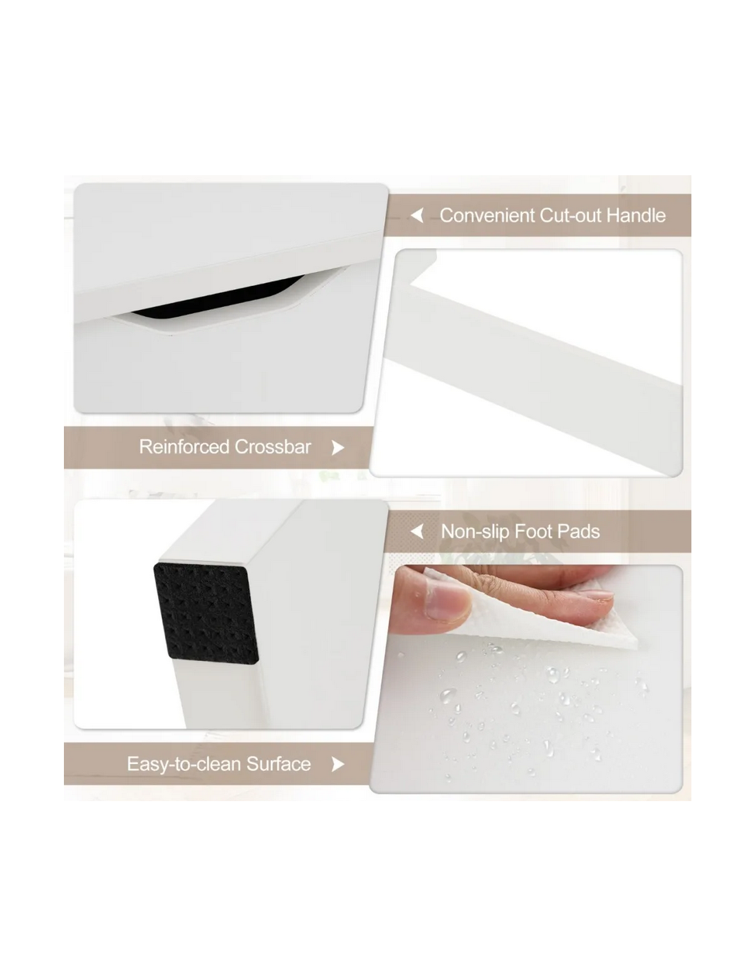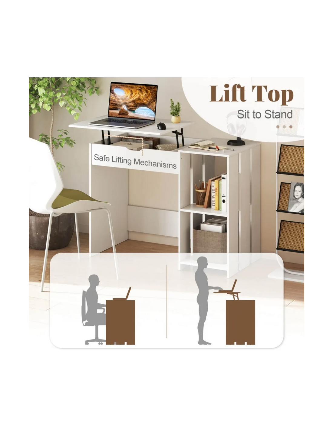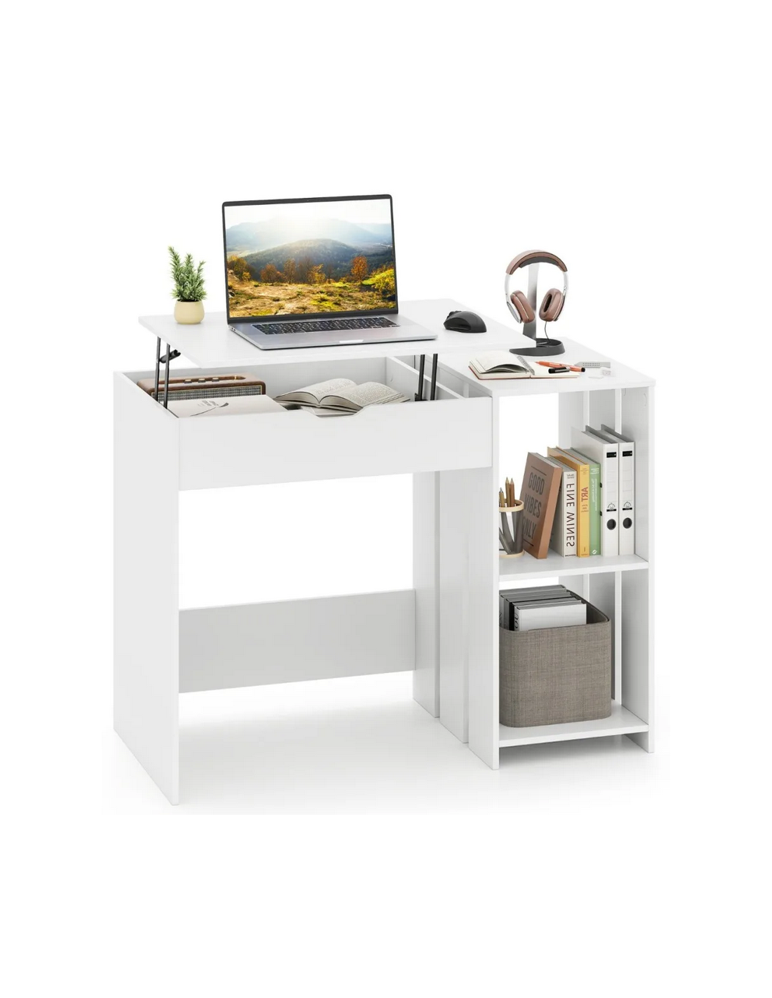 Hæve-/Sænke skrivebord udført i et design af hvid møbelplade. Skrivebordet måler 75 - 89 cm i højden og 100 x 49 cm i bredde og dybde.