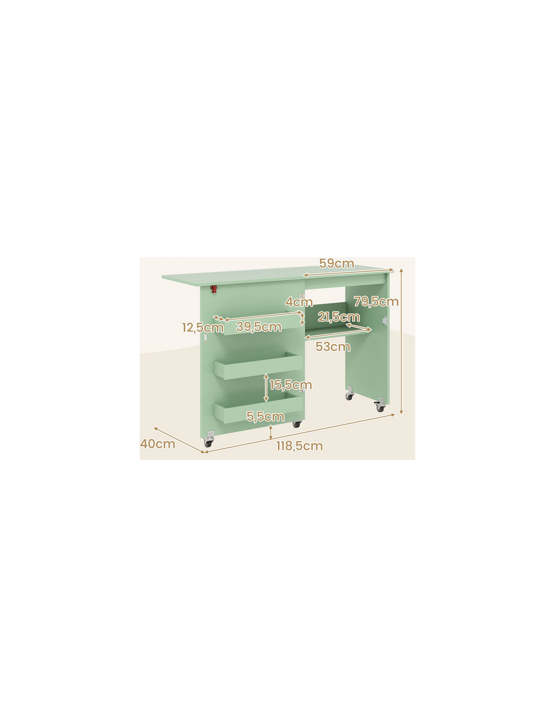 Symaskinebord eller computerbord i møbelplade 118,5 x 40 cm - Grøn