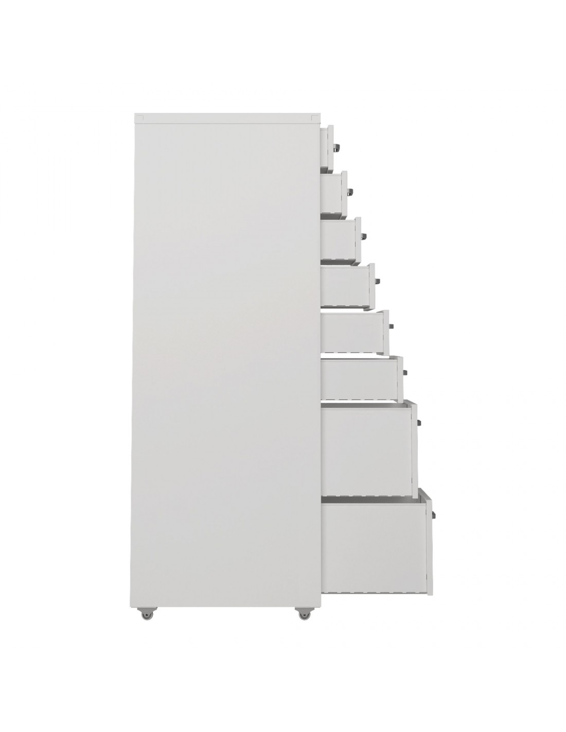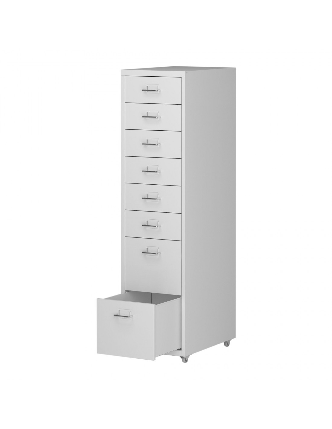 Koka skuffesektion med 8 skuffer, udført i et design af hvidlakeret metal. Skuffesektionen måler 109 cm i højden og 28 x 41 cm i bredde og dybde.