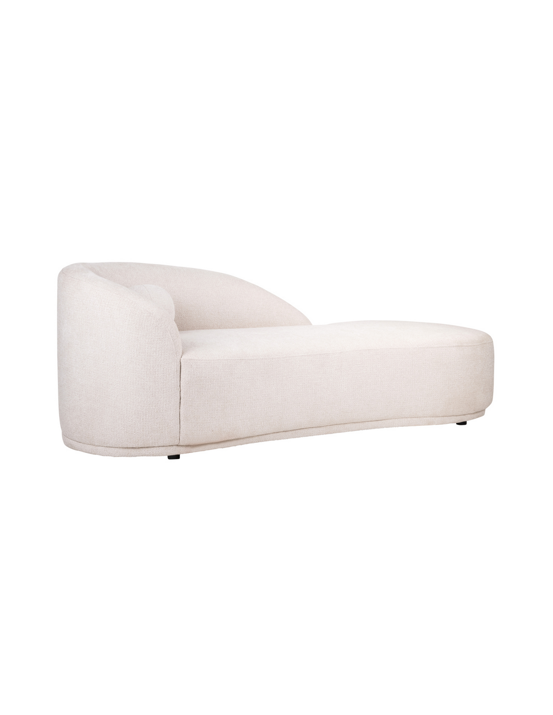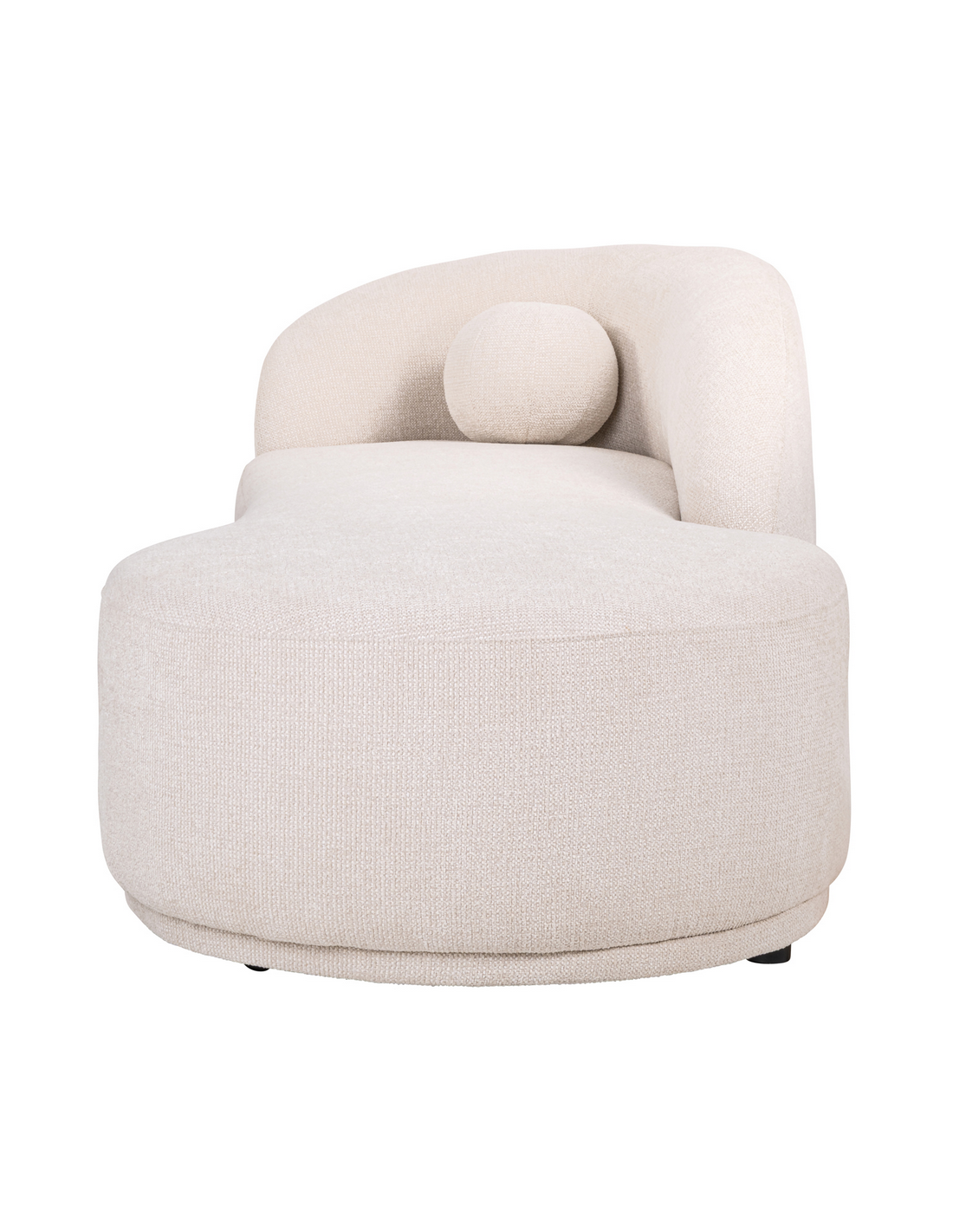 EMMA Daybed sofa udført i et design fra hollandske Richmond Interiors, i cremefarvet polyester og med ben i sort kunststof. Daybed sofaen måler 78 cm i højden over ryggen og 220 x 90 cm i bredde og dybde. Med til daybedden medfølger rund pyntepude.