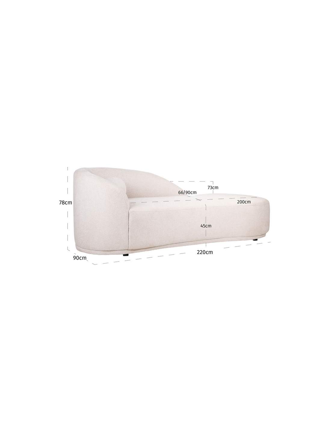 Med en imponerende bredde på 220 cm er daybed sofaen rummelig og giver rig mulighed for afslapning, fælles stunder med familien eller hyggelige aftener med gæster. Det gennemtænkte design kombinerer funktionalitet med æstetik, hvilket sikrer, at daybed sofaen både er behagelig at sidde i og smuk at se på.