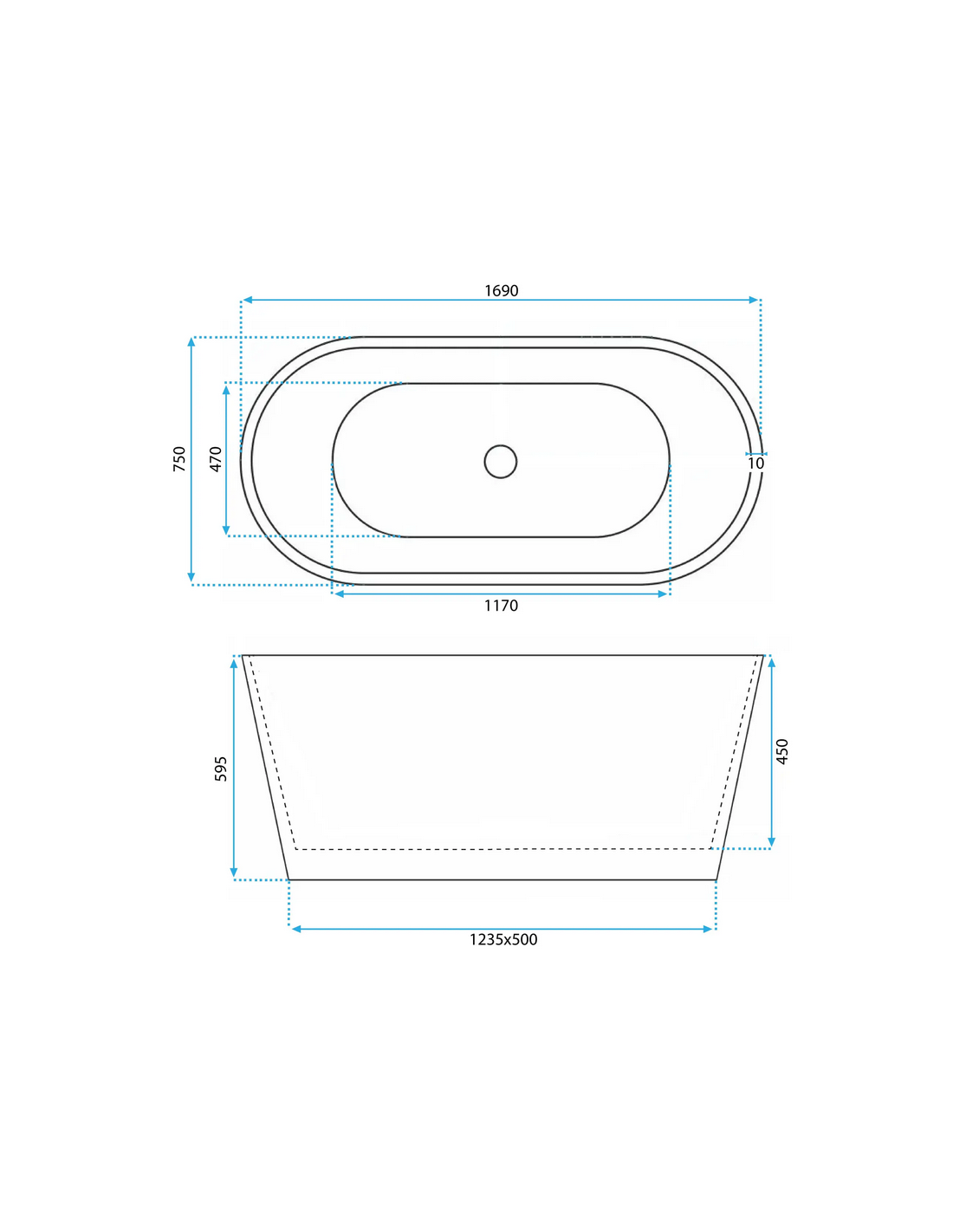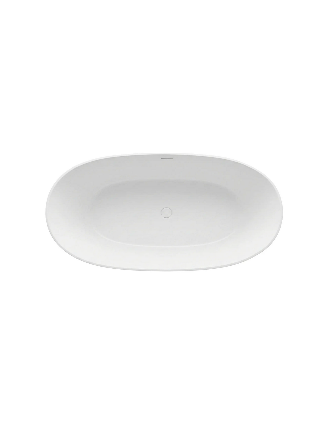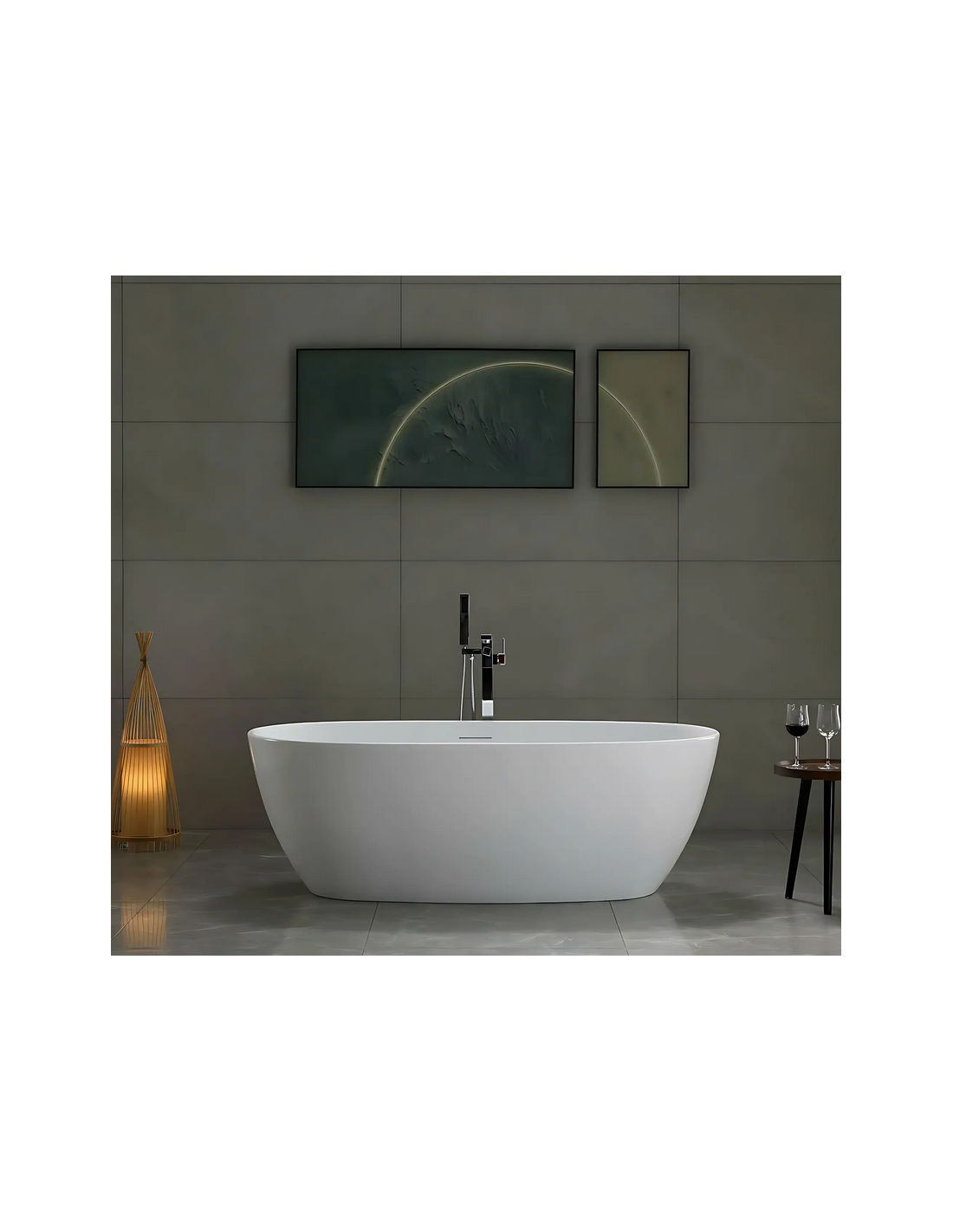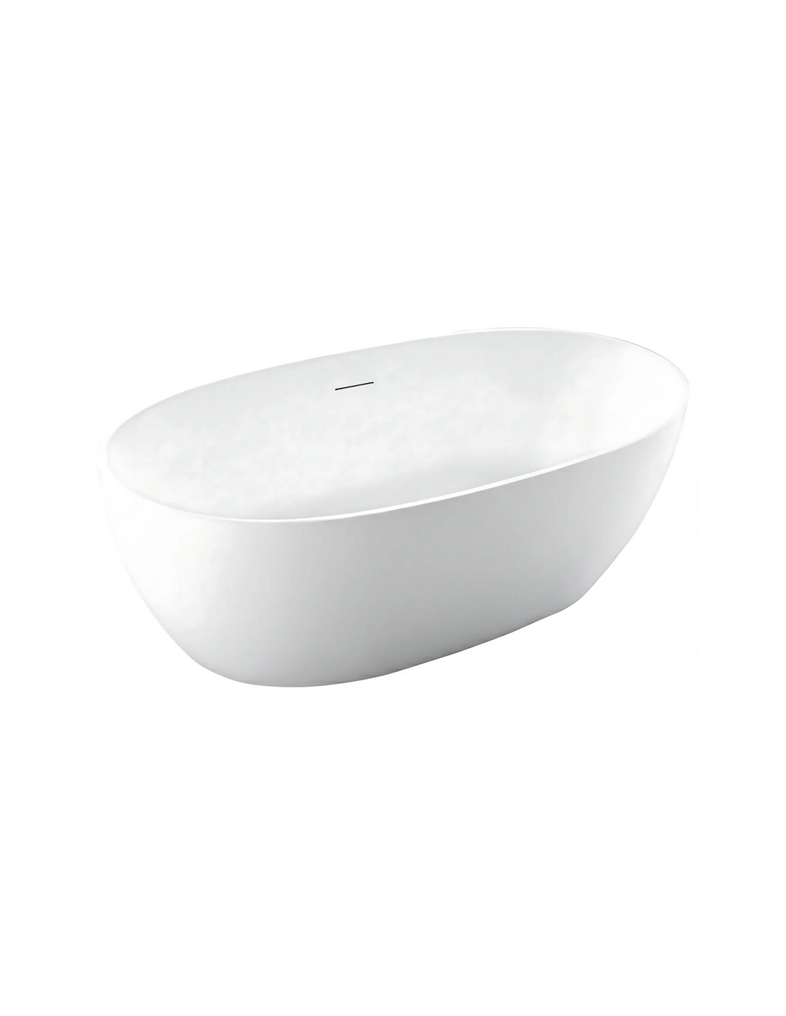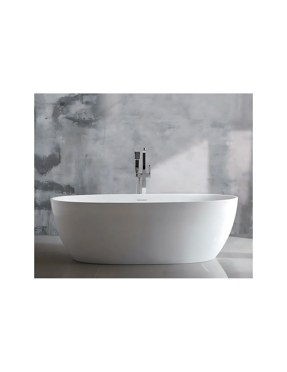 ROMA Fritstående badekar udført i et moderne og nordisk design af blank hvid sanitets akryl, med overløb og pop-up bundventil i blank hvidlakeret messing. Badekaret måler 169 cm i længden og 75 cm i bredden (ydermål).