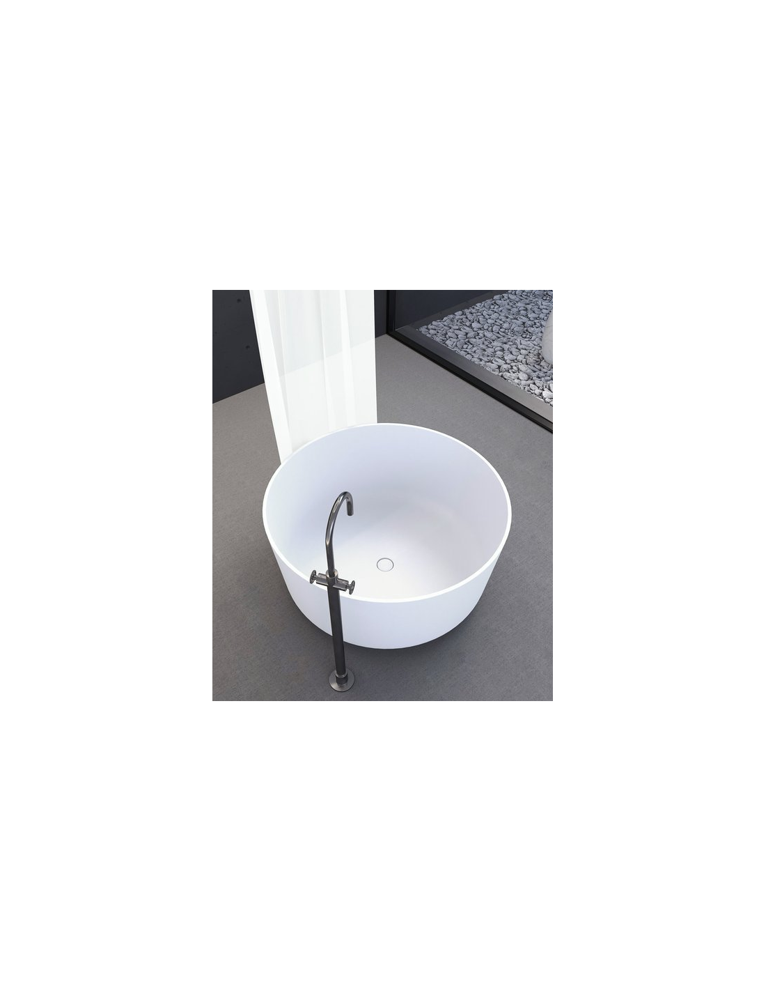 STATIS Rundt fritstående badekar i solid stone Ø110 cm - Hvid
