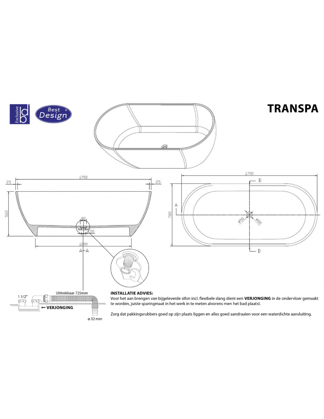 • Afløb samt pop-up bundventil i kromlakeret messing medfølger