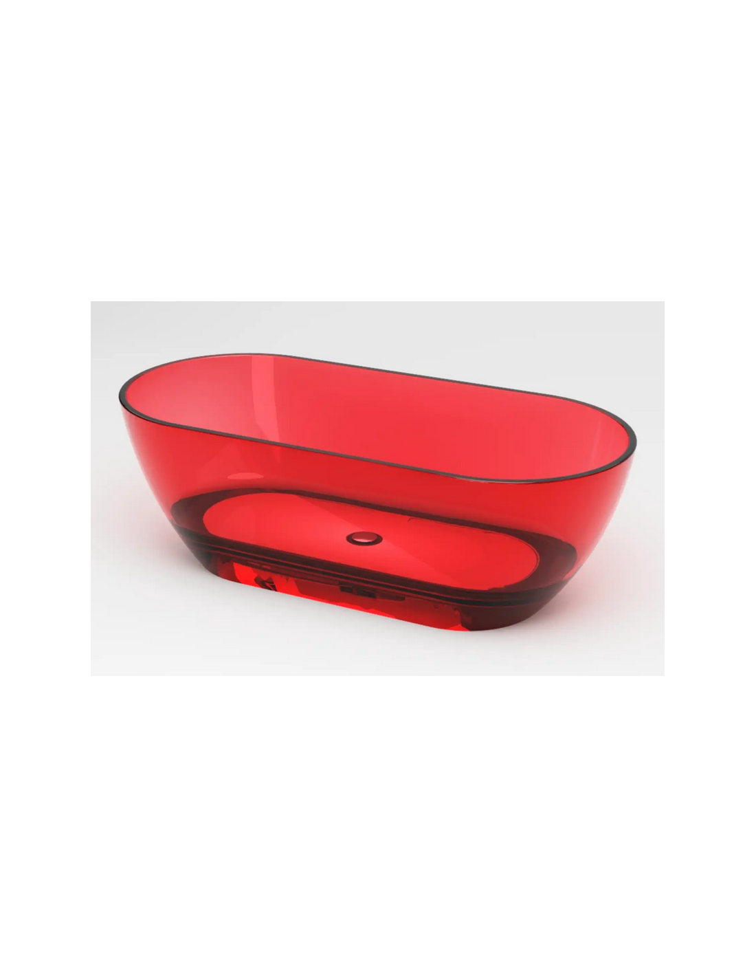 COLOR Fritstående badekar udført i et moderne design af rød transparent resin med pop-up bundventil. Badekaret måler 170 cm i længden og 78 cm i bredden (ydermål).