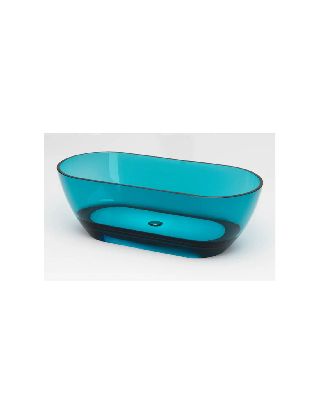 COLOR Fritstående badekar udført i et moderne design af blå transparent resin med pop-up bundventil. Badekaret måler 170 cm i længden og 78 cm i bredden (ydermål).