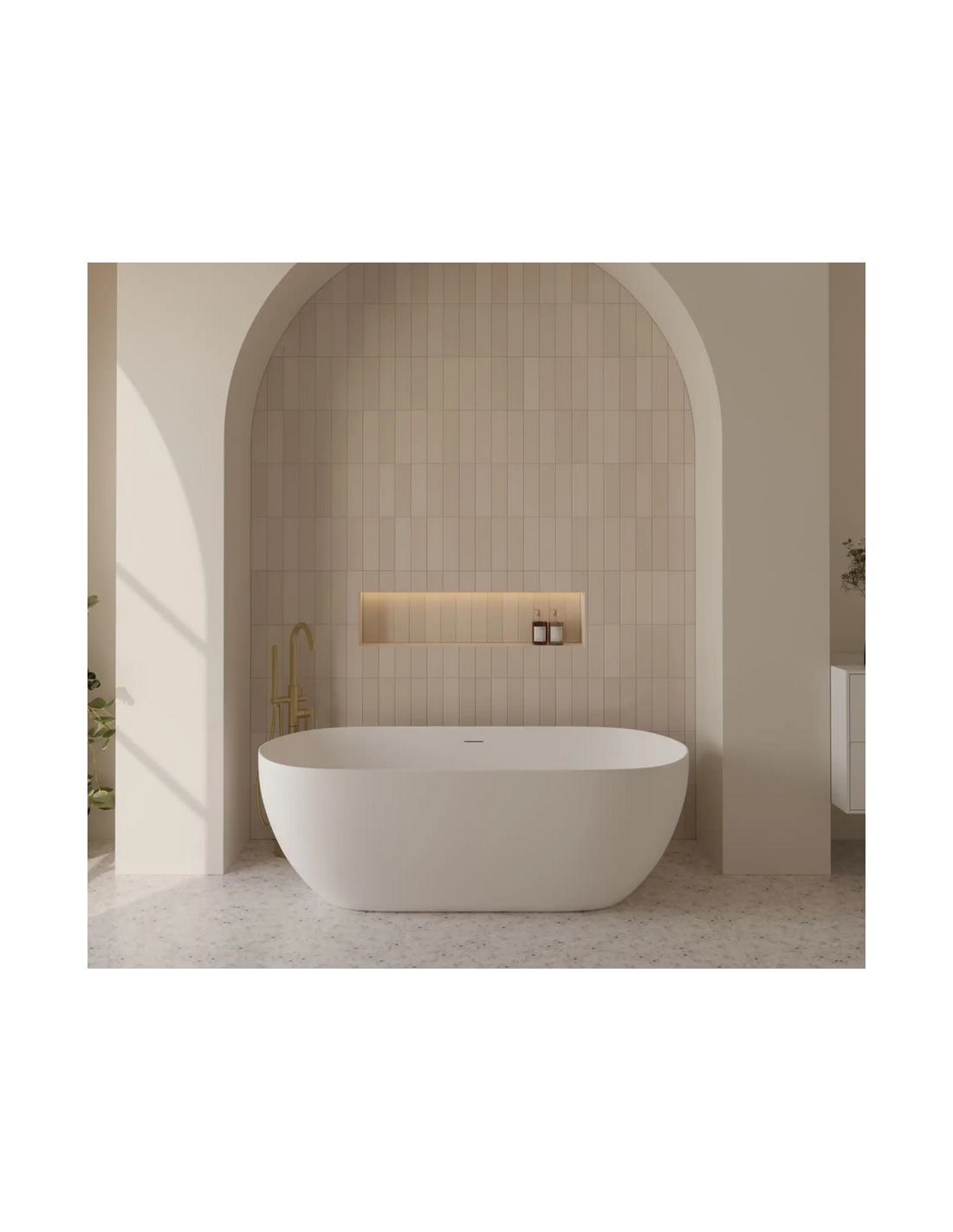 FRIDAY Fritstående badekar udført i et moderne design af hvid højglans sanitets akryl med pop-up bundventil og overløb. Badekaret måler 178 cm i længden og 78 cm i bredden (ydermål).