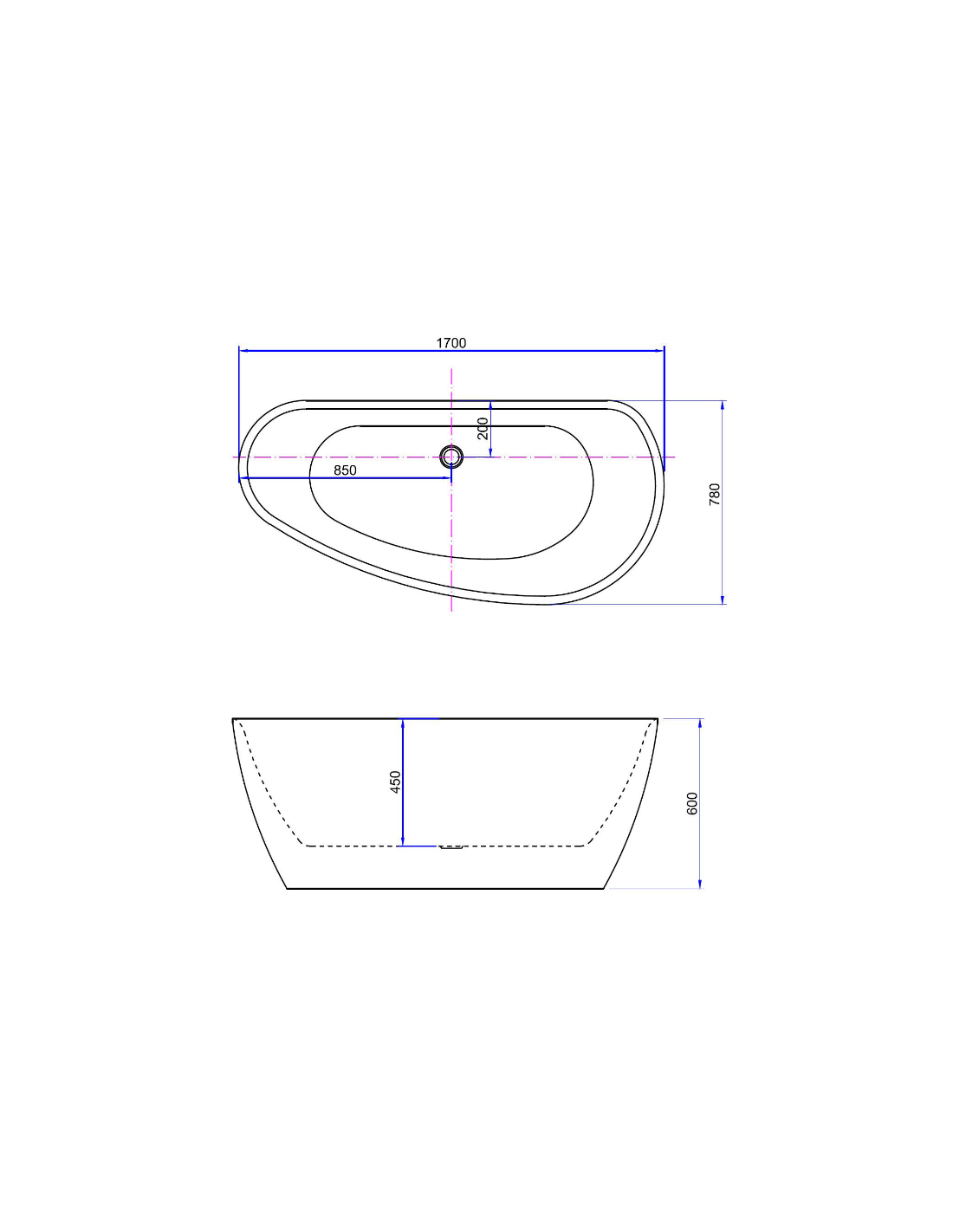 MONDAY Fritstående badekar udført i et moderne design af hvid højglans sanitets akryl med pop-up bundventil og overløb. Badekaret måler 170 cm i længden og 78 cm i bredden (ydermål).