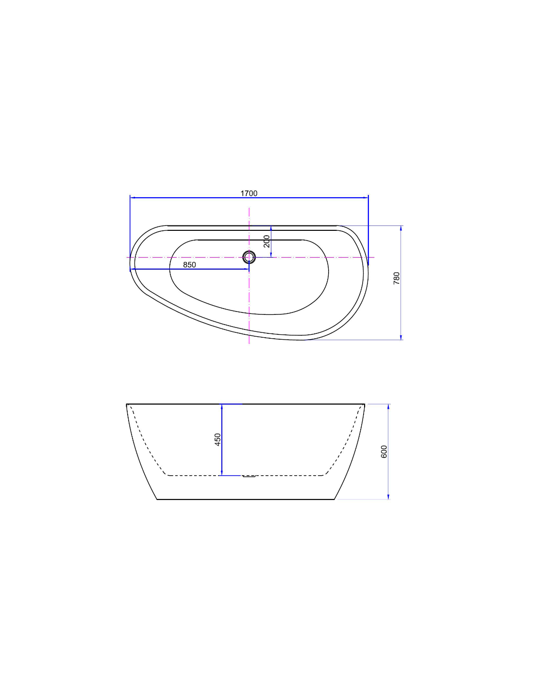 MONDAY Fritstående badekar udført i et moderne design af mat hvid sanitets akryl med pop-up bundventil og overløb. Badekaret måler 170 cm i længden og 78 cm i bredden (ydermål).