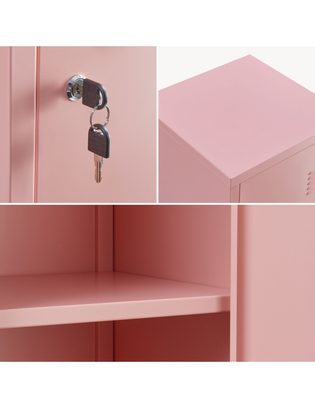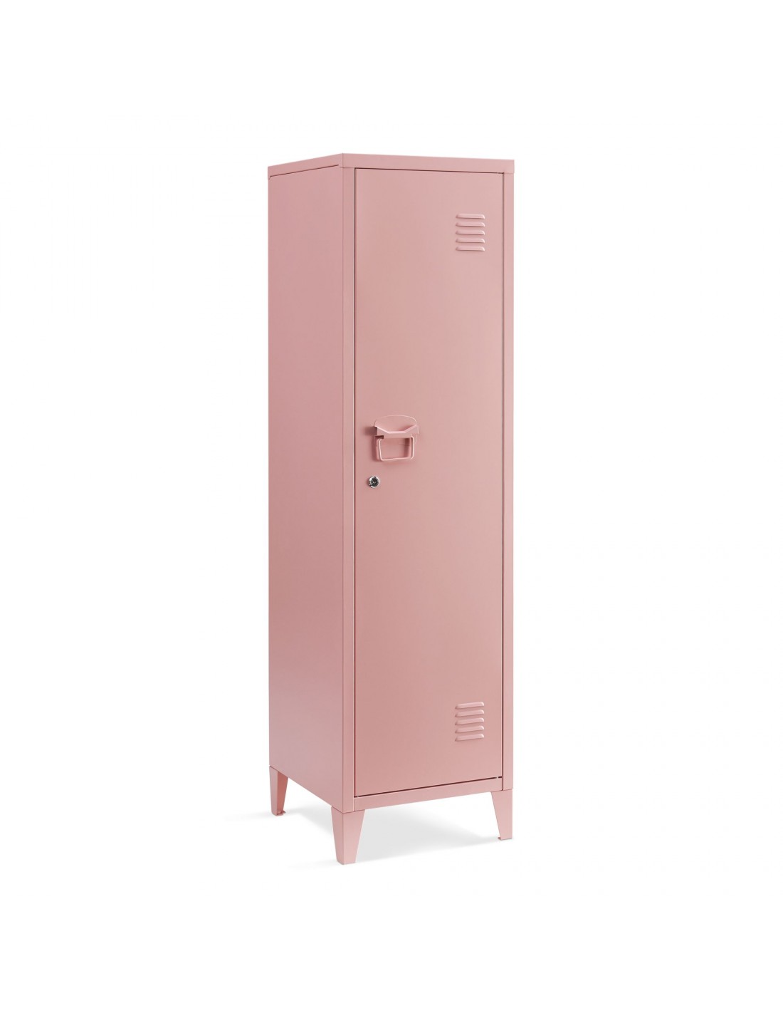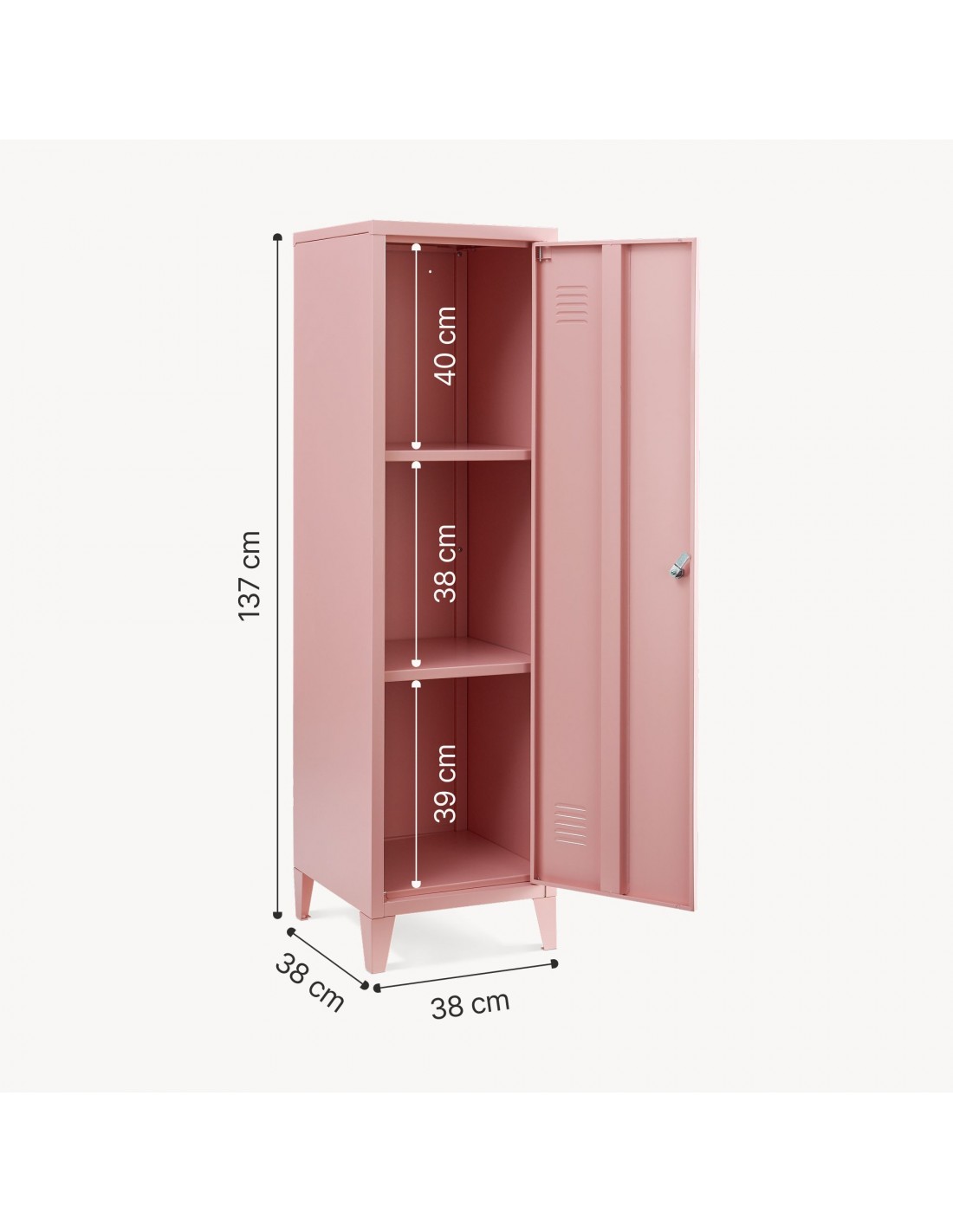 Kurik garderobeskab udført i et design af rosalakeret metal. Garderobeskabet måler 137 cm i højden og 38 x 38 cm i bredde og dybde og indeholder 3 hylderum.