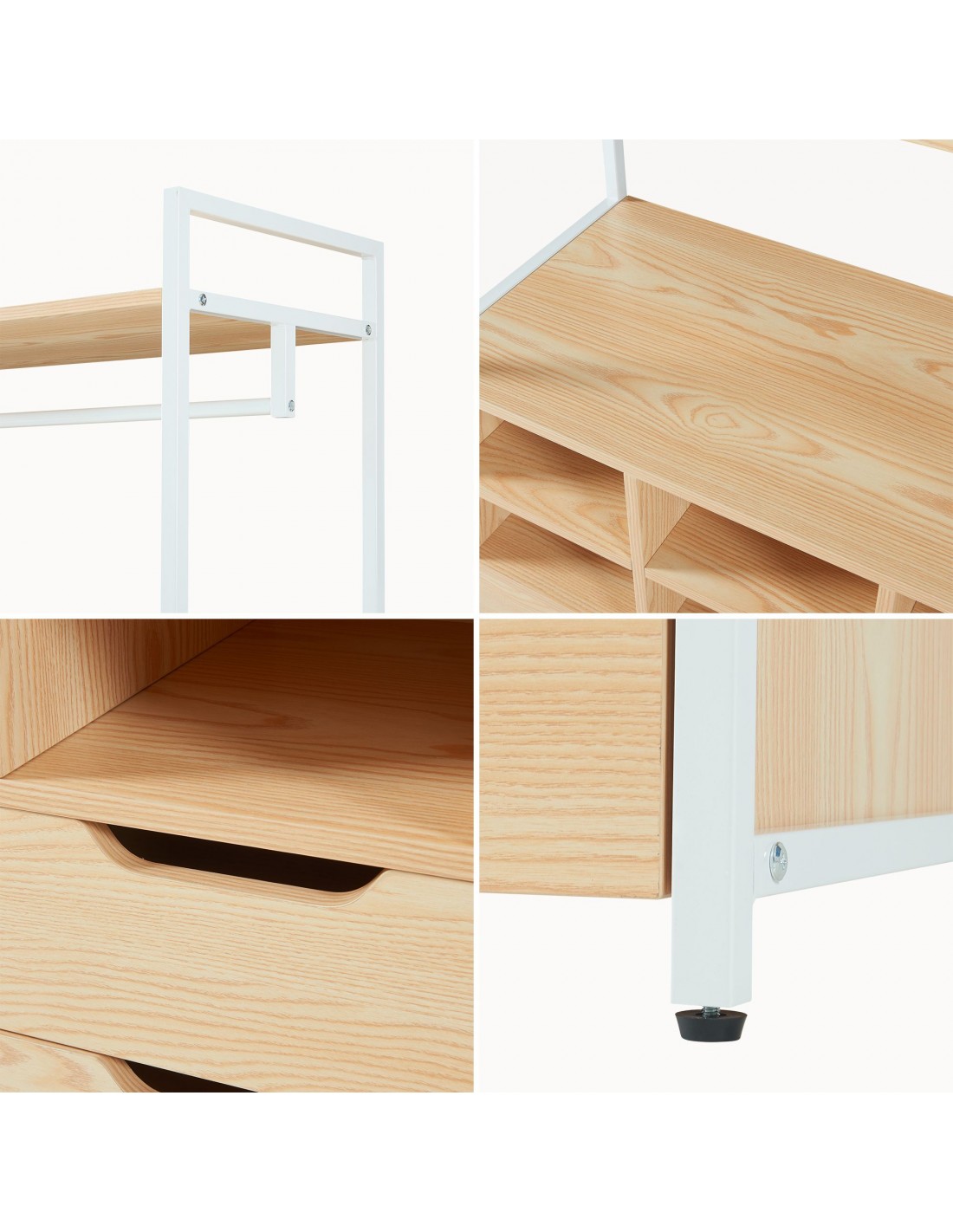 Garderobe i metal og møbelplade 180 x 84 x 40 cm - Hvid/Natur