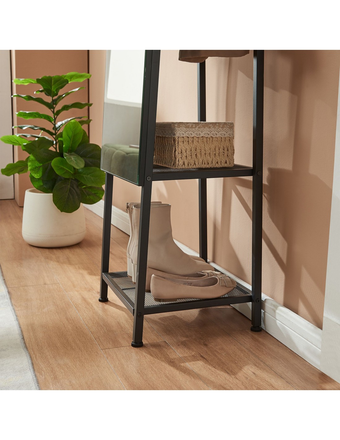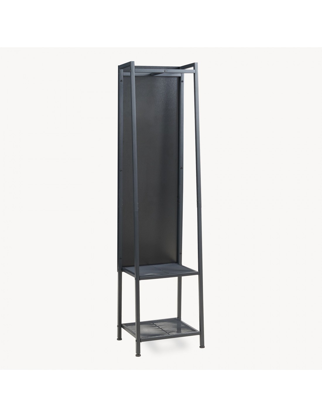 Gulvspejl med hylder og bøjlestang i metal og glas H160 x B40 x D35 cm - Sort