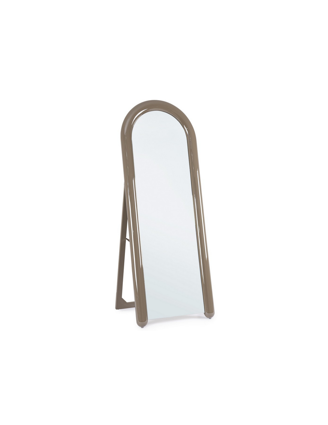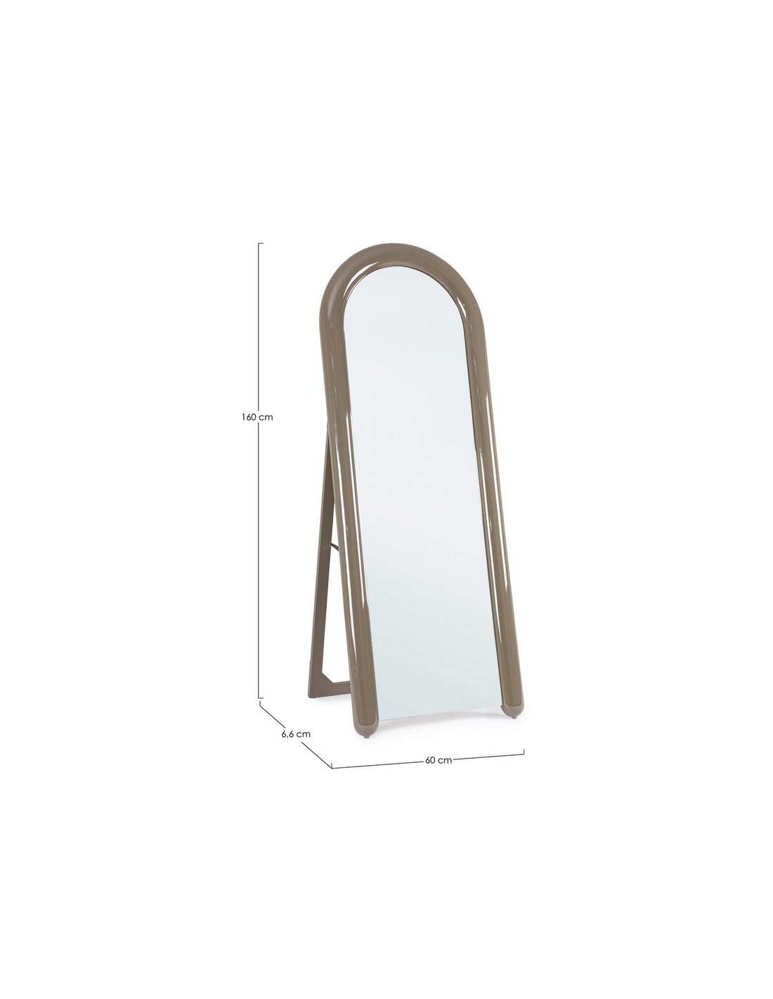 Gulvspejl udført i et retropræget design af blank urtebrun lakeret MDF. Spejlet måler 160 cm i højden og 60 cm i bredden.