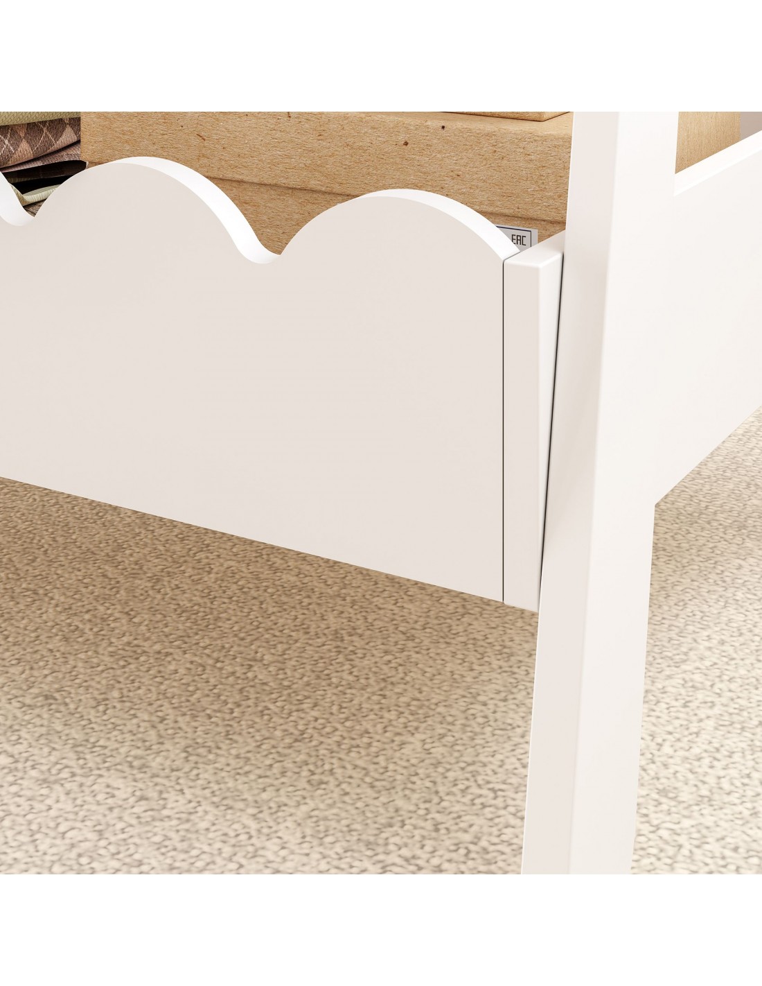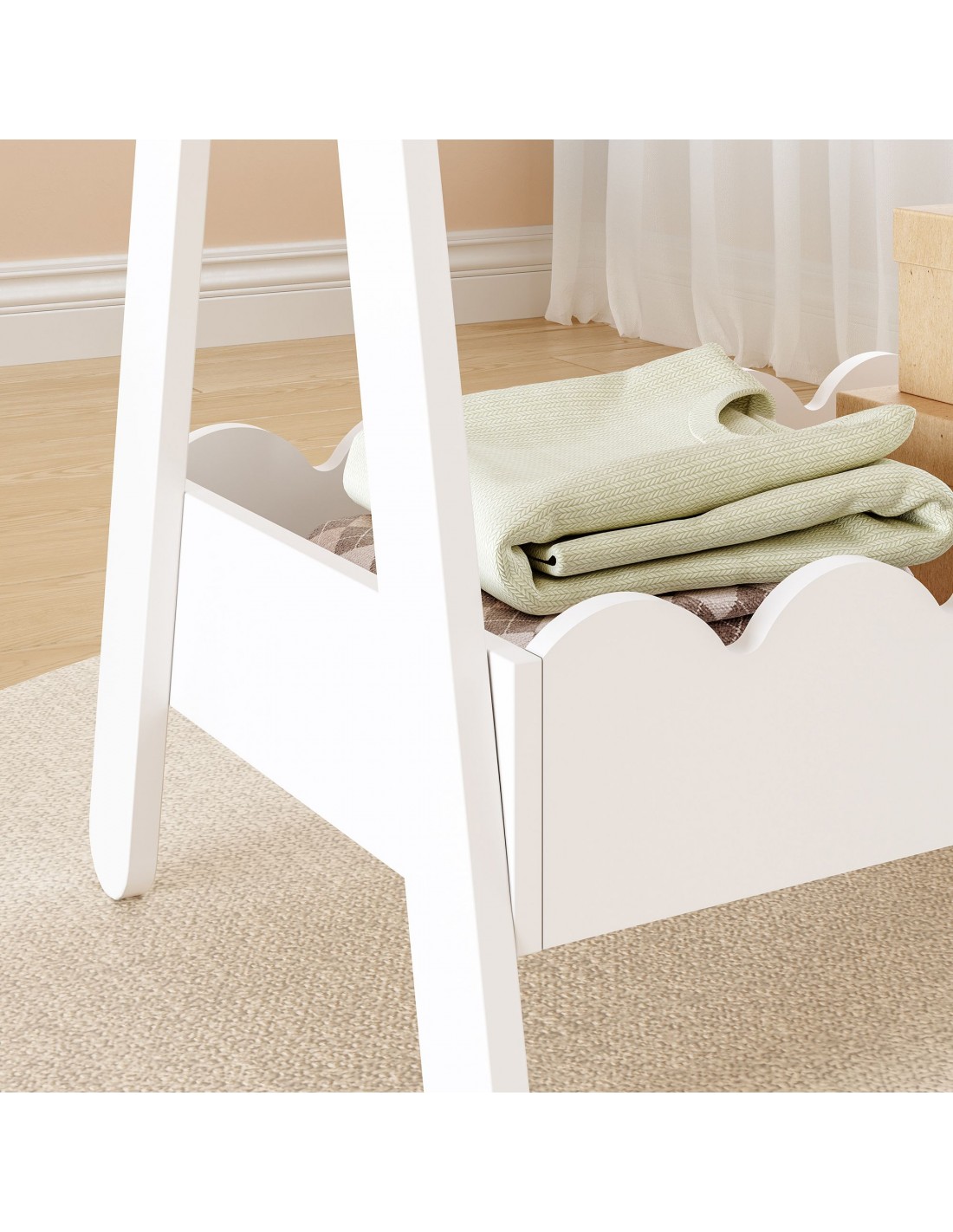 Garderobe til børneværelset, udført i et design af hvidlakeret MDF. Garderoben måler 99 cm i højden og 66 x 38 cm i bredde og dybde.