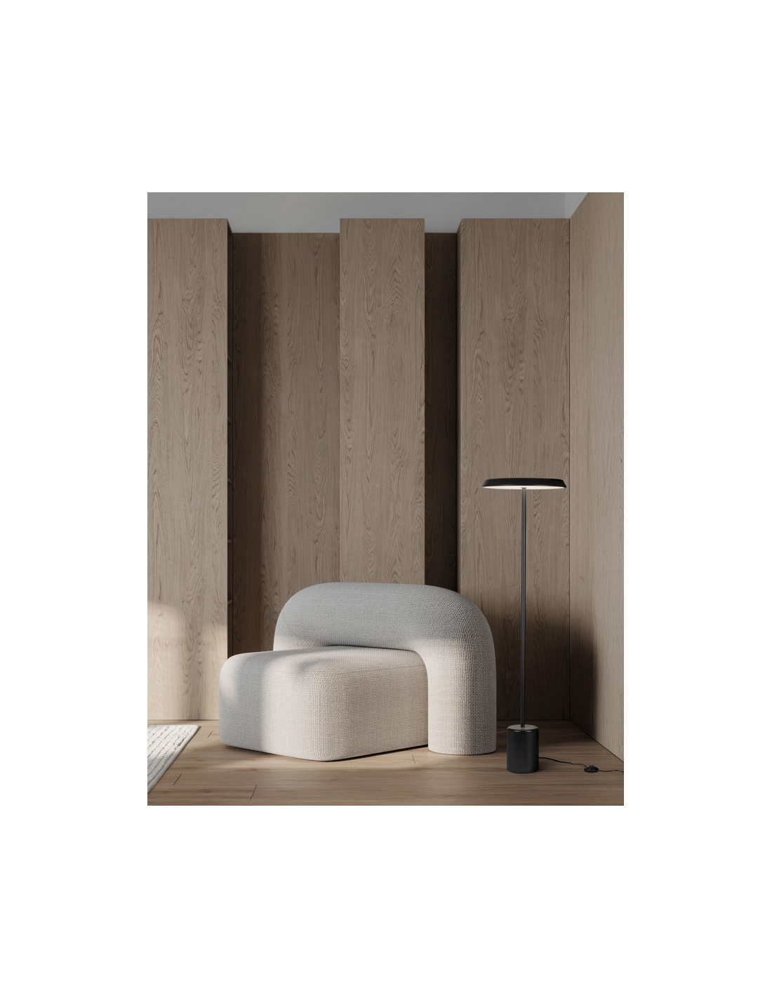 OPHELIA Gulvlampe i aluminium H135 cm 1 x 27W LED - Mat sort/Grå træstruktur