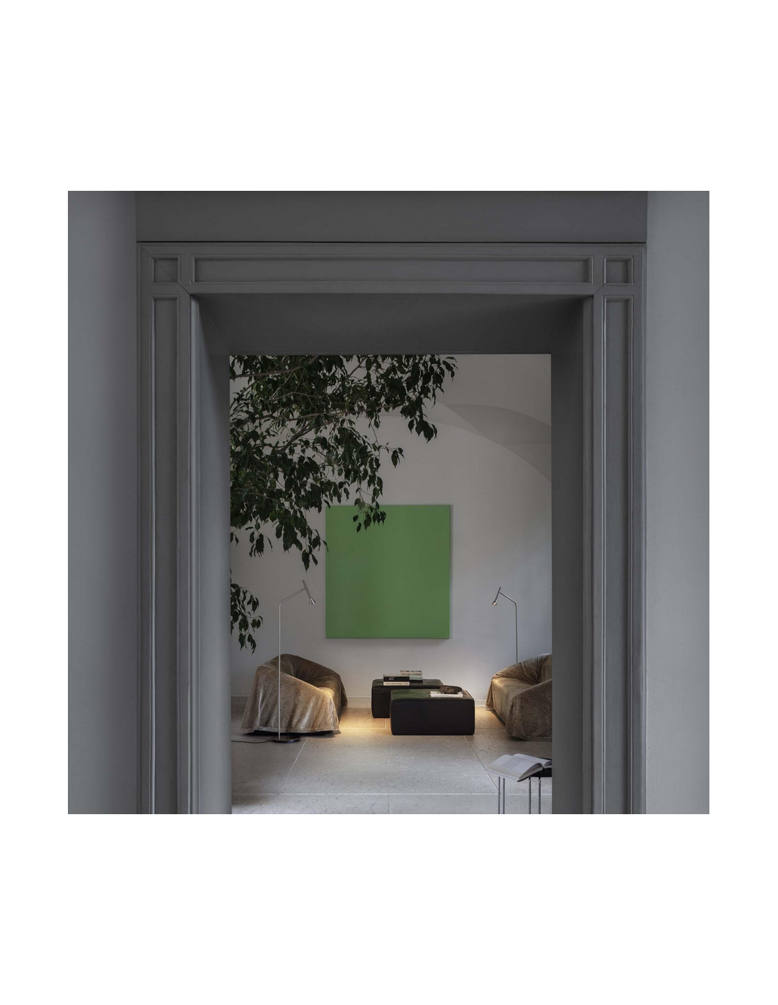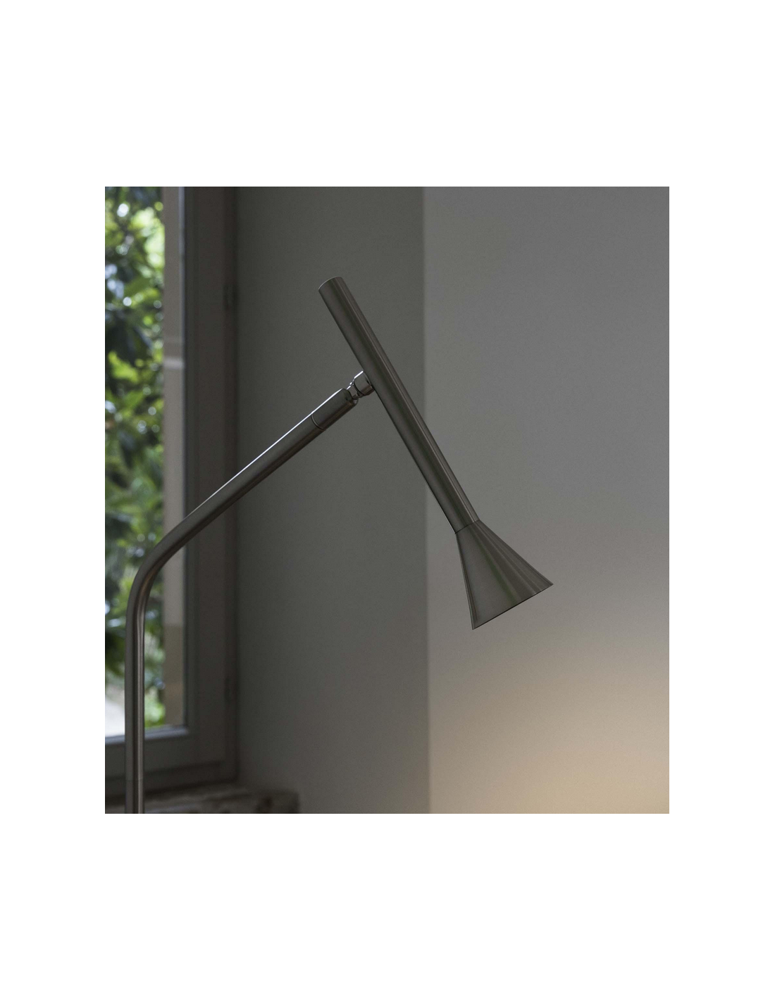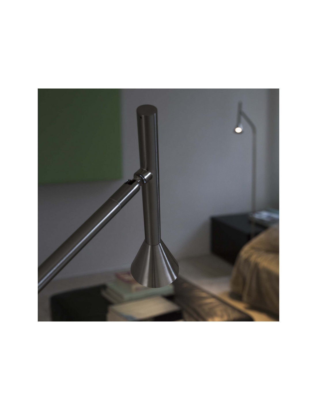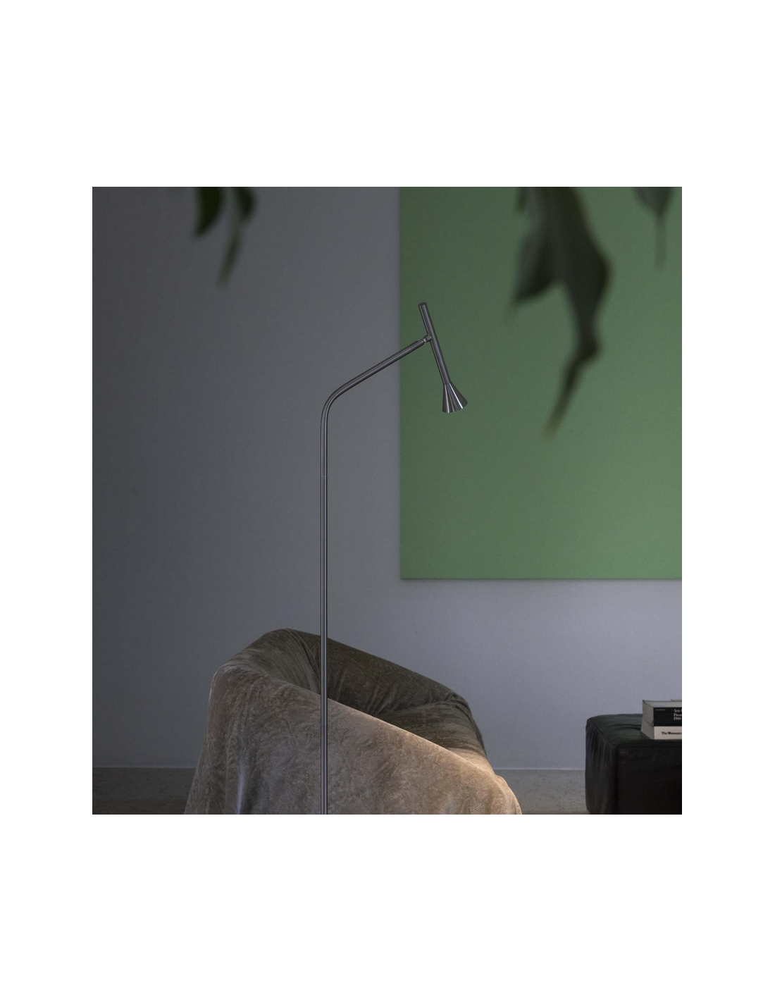 DIESIS Gulvlampe udført i et moderne design fremstillet af satineret nikkelfarvet stål. Lampen måler 151 cm i højden og anvender 1 x 4,5W LED lyskilde (Inkl.). Lampen er dæmpbar via switch på lampen.