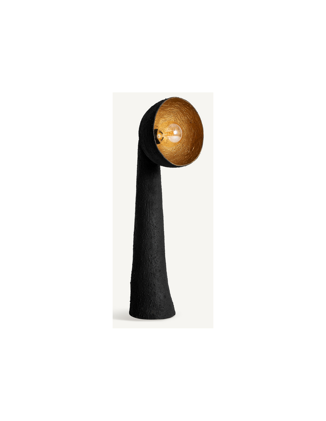 LIERO Gulvlampe fremstillet i et rustikt design af sort og guldfarvet resin. Lampen måler 83 cm i højden og anvender 1 x E27 lyskilde (Ekskl.). Lampen har fodafbryder på 150 cm ledning.