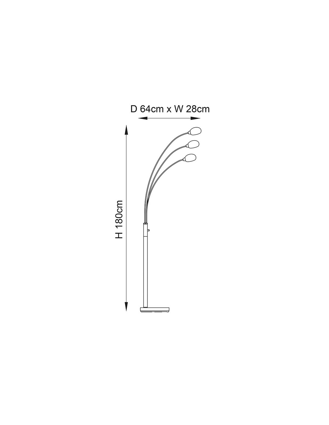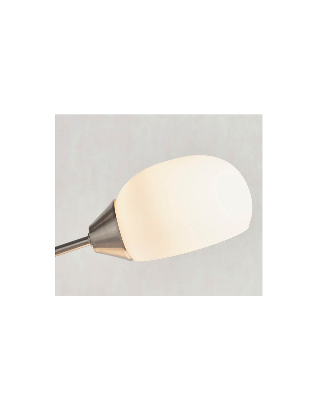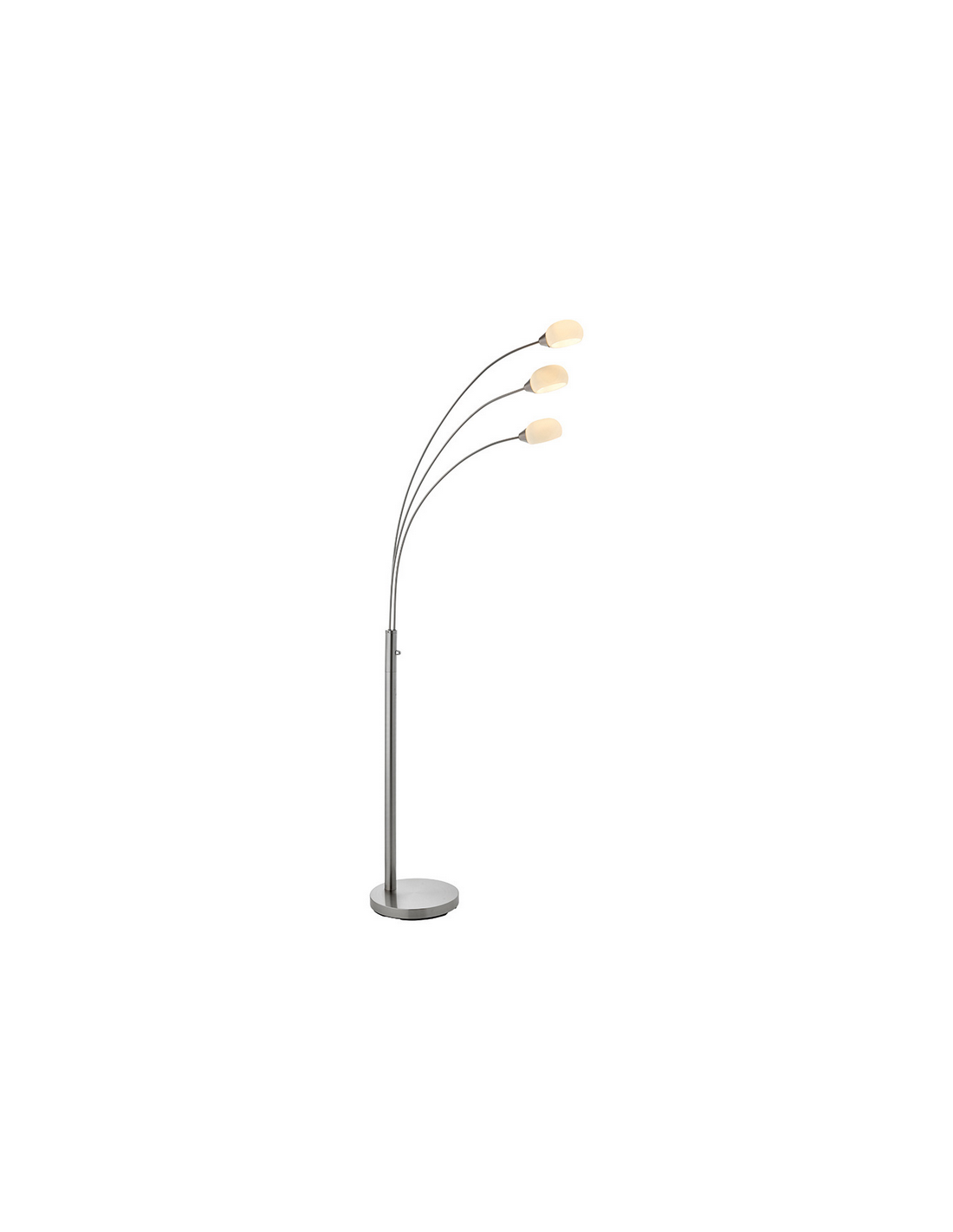 JASPA Gulvlampe udført i et retropræget design af satineret nikkelfarvet stål og med skærme i opalhvid glas. Lampen er dæmpbar og anvender 3 x 5W LED lyskilder (Inkl.). Lampen måler 180 cm i højden og 28 x 64 cm i bredde og dybde/fremspring. Lampen kommer med 200 cm ledning.