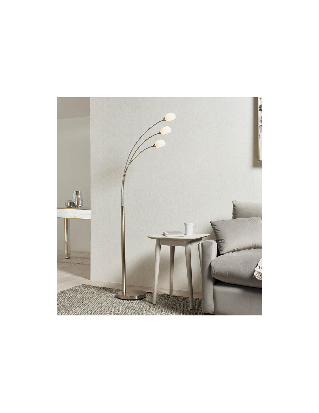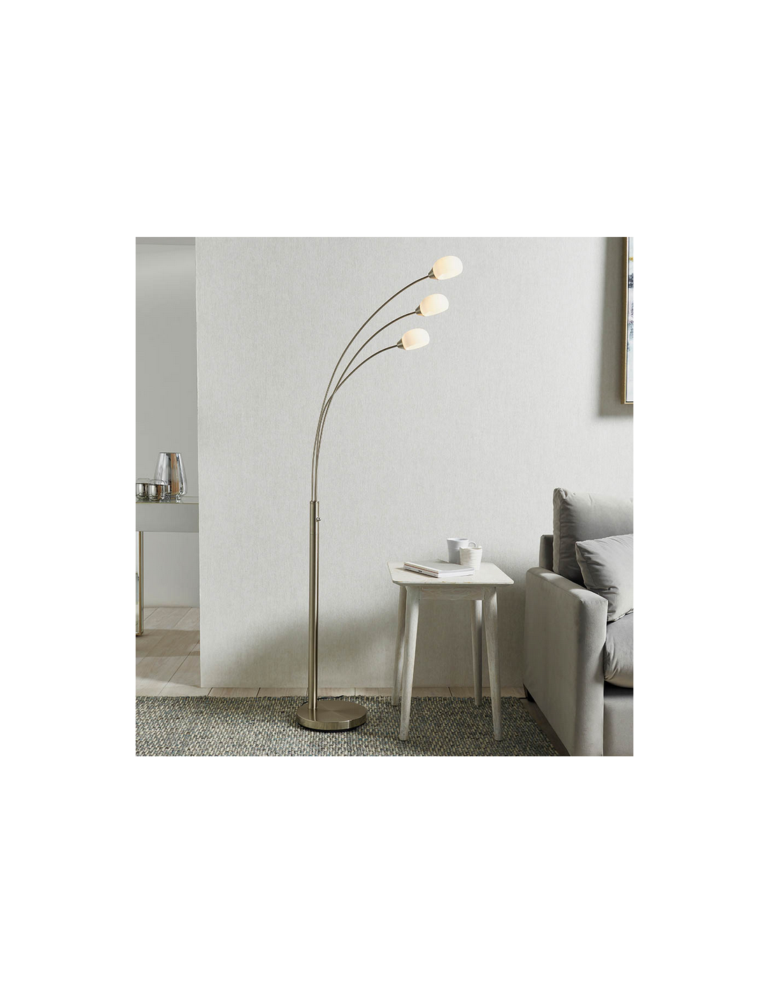 JASPA Gulvlampe i stål og glas H180 cm 3 x 5W LED - Satineret nikkel/Opalhvid