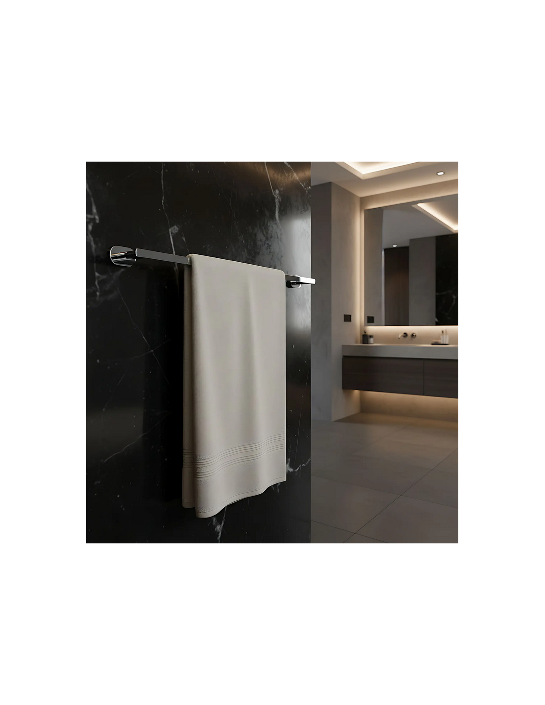 Håndklædestang udført i et moderne design af kromlakeret metal. Stangen måler 57,5 cm i bredden.