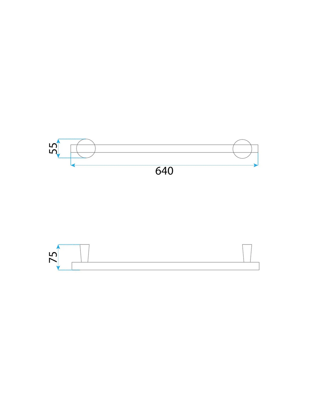 Håndklædestang udført i et moderne design af børstet nikkelfarvet lakeret metal. Stangen måler 64 cm i bredden.